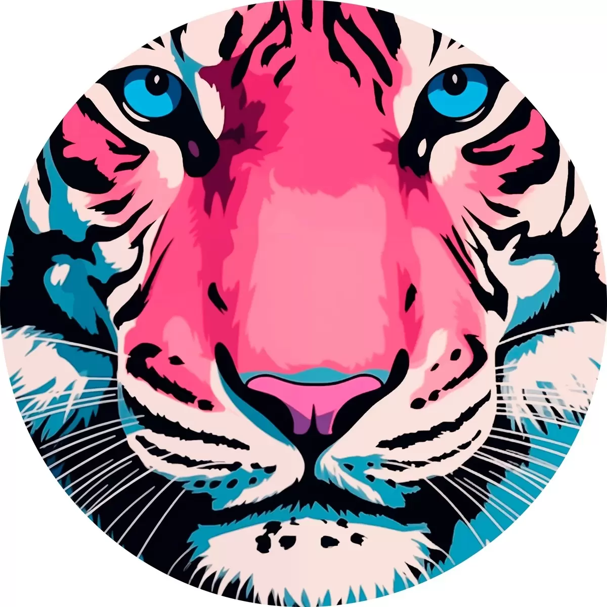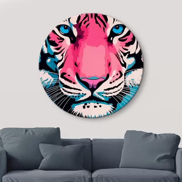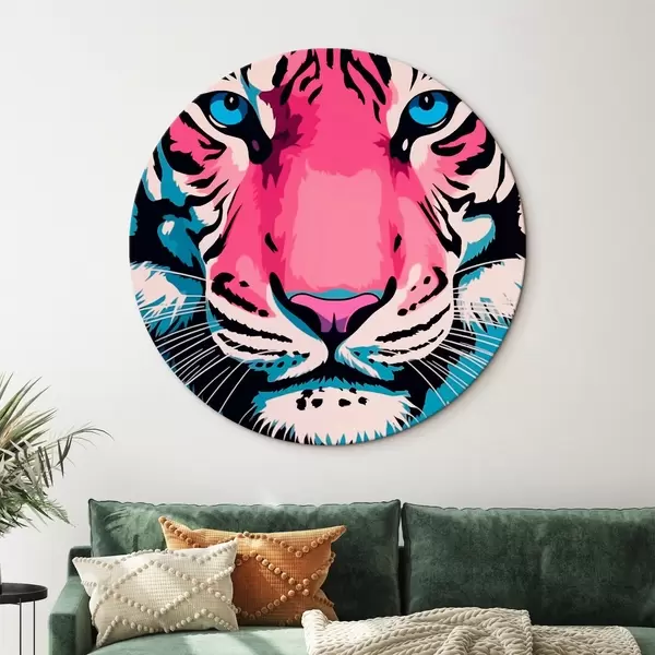 Picturi rotunde Portret stilizat al unui tigru în culori luminoase Nr r43007