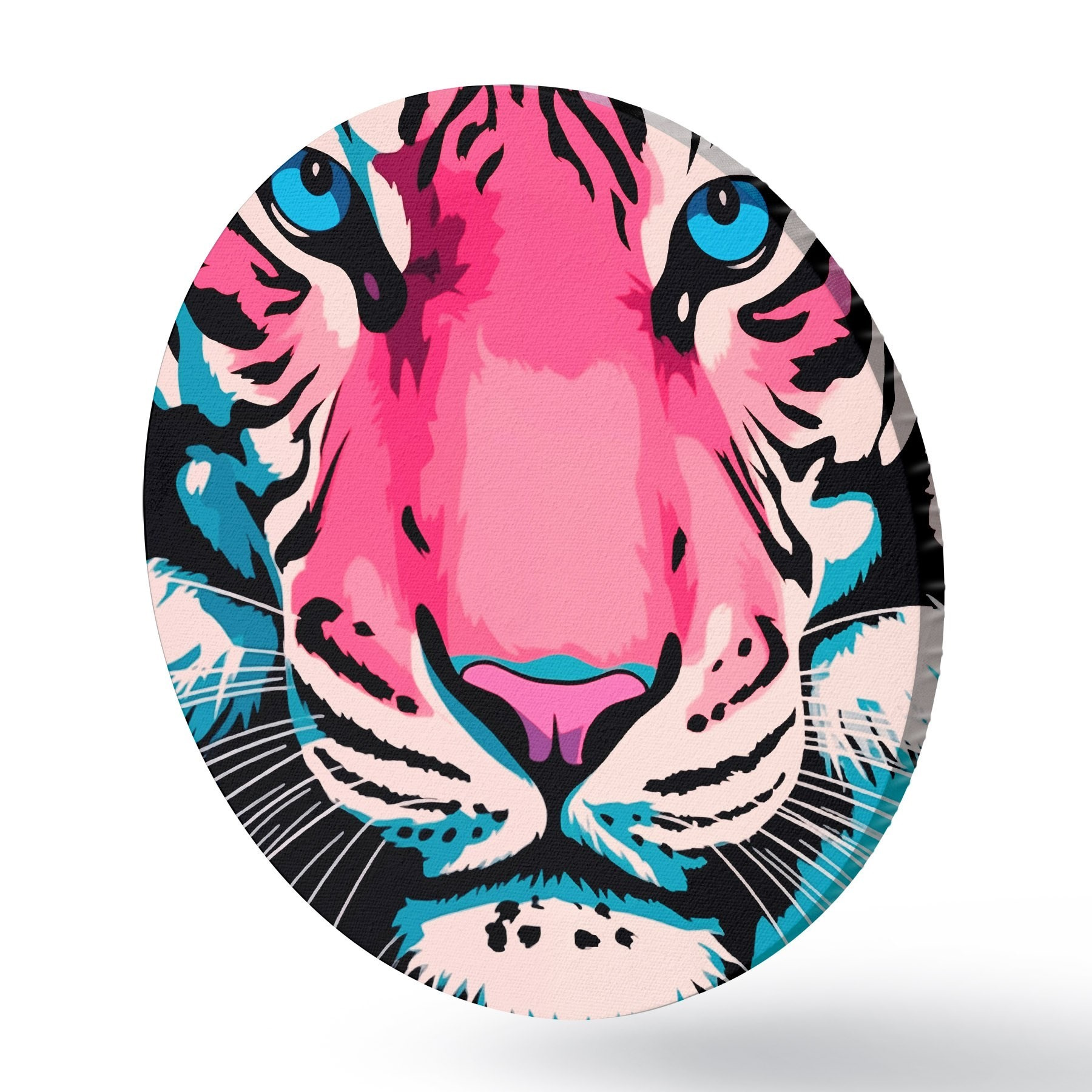Picturi rotunde Portret stilizat al unui tigru în culori luminoase r43007
