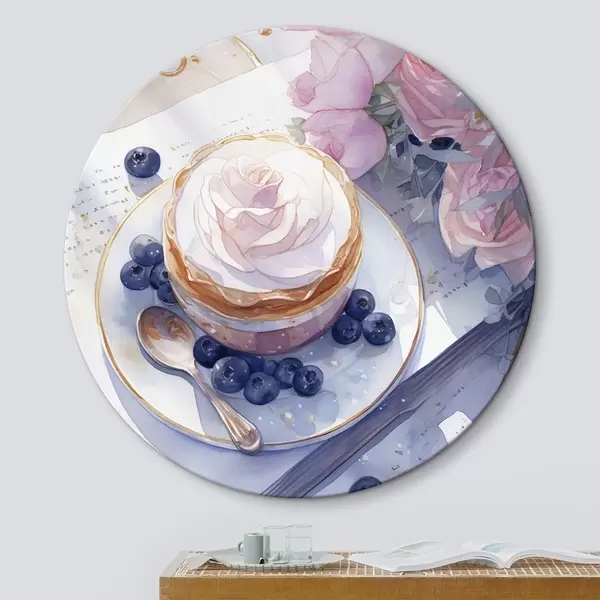 Picturi rotunde Blueberry cupcake, stil boho, acuarelă, trandafiri roz, poetic Nr r43053
