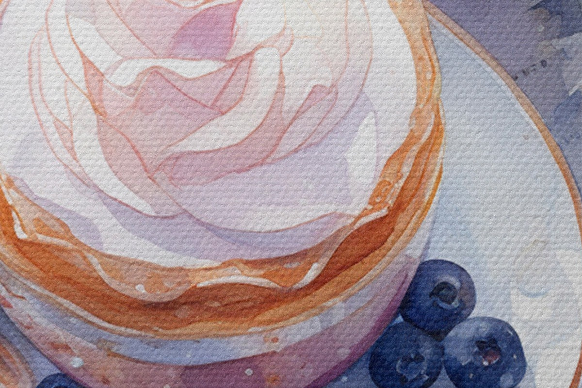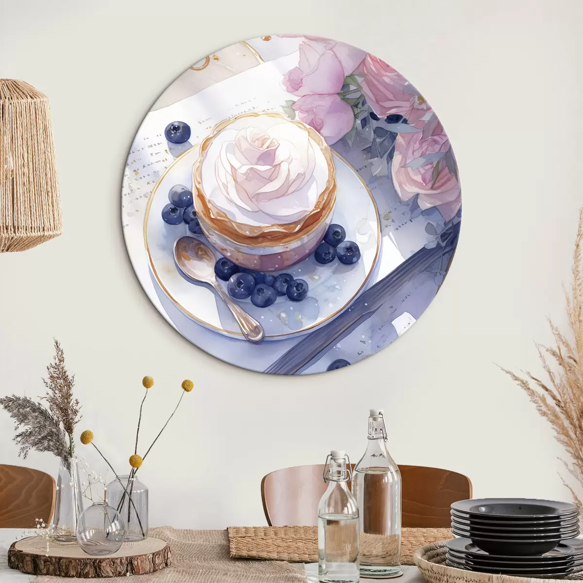 Picturi rotunde Blueberry cupcake, stil boho, acuarelă, trandafiri roz, poetic Nr r43053