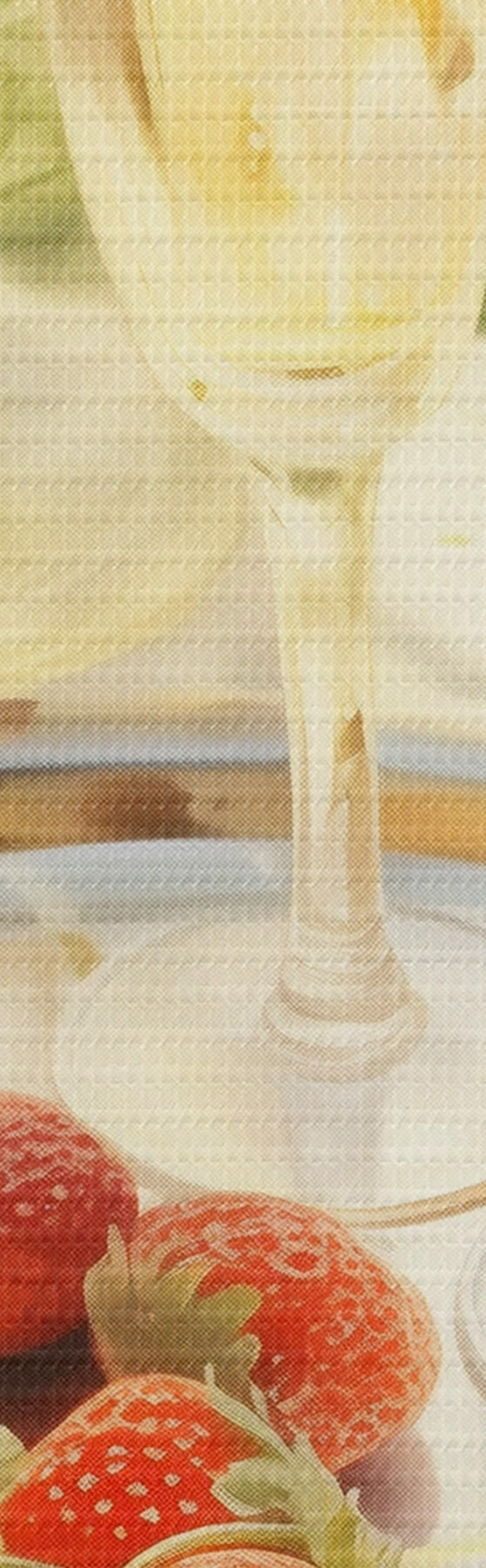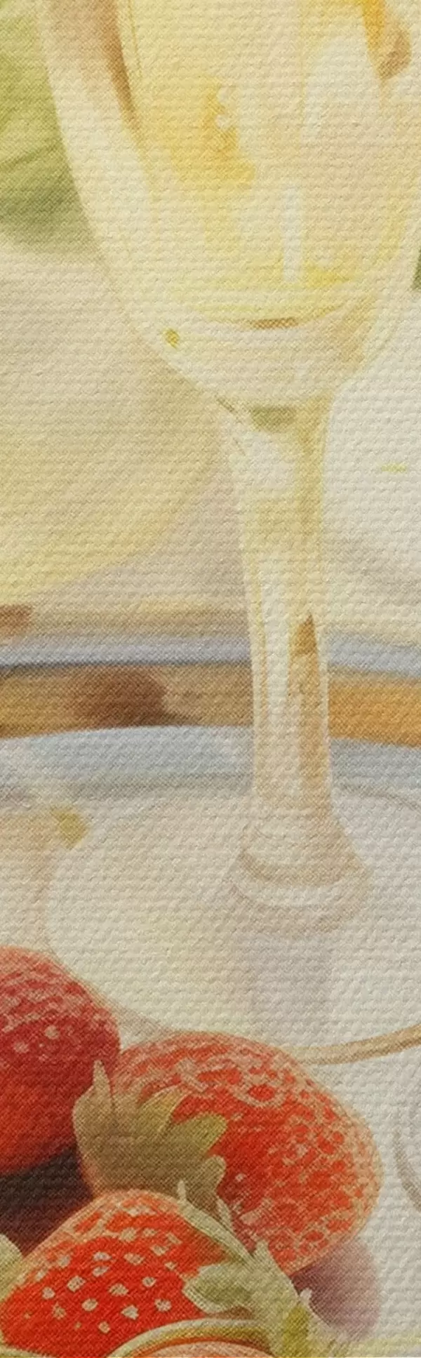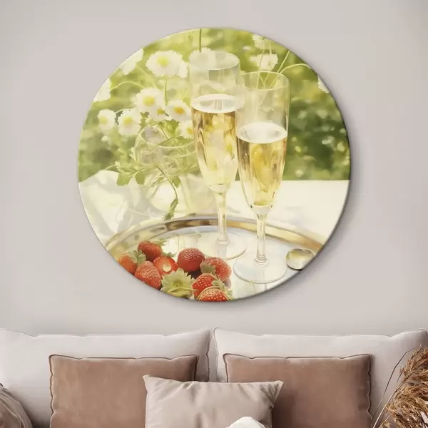 Picturi rotunde Pahare de șampanie cu căpșuni pe tavă, flori de mușețel, vară r43054