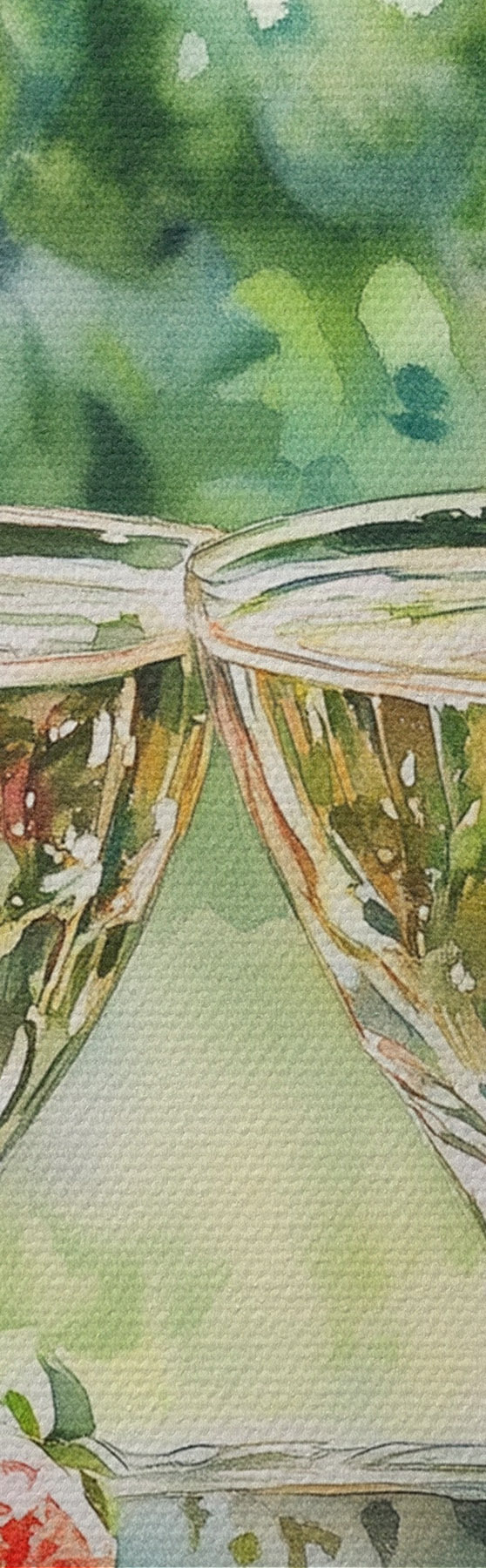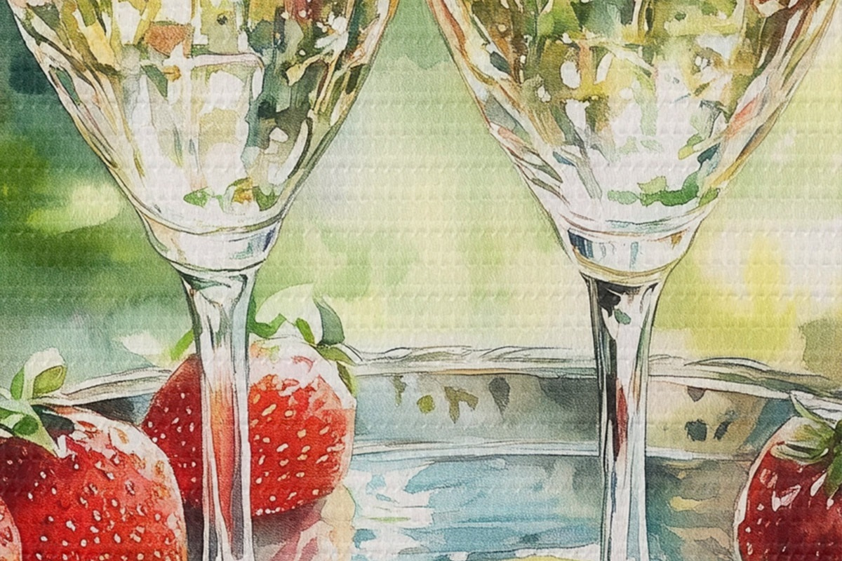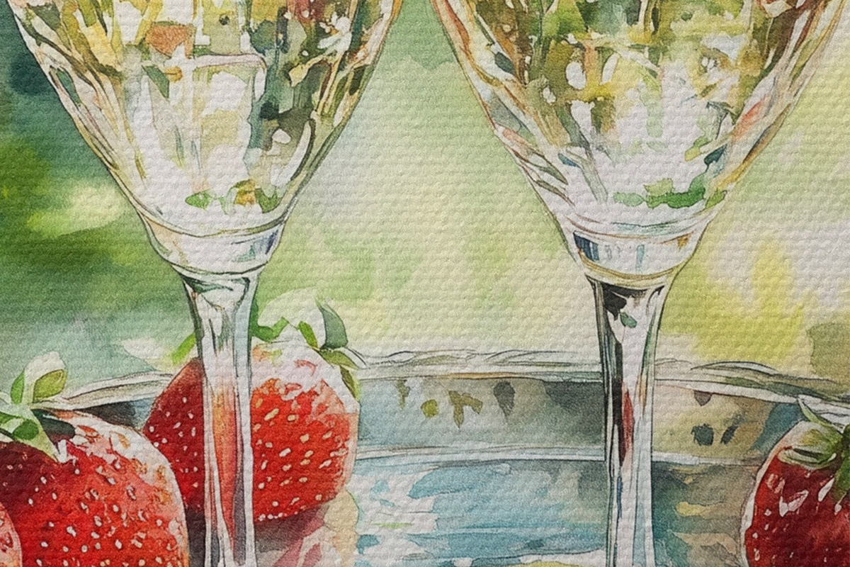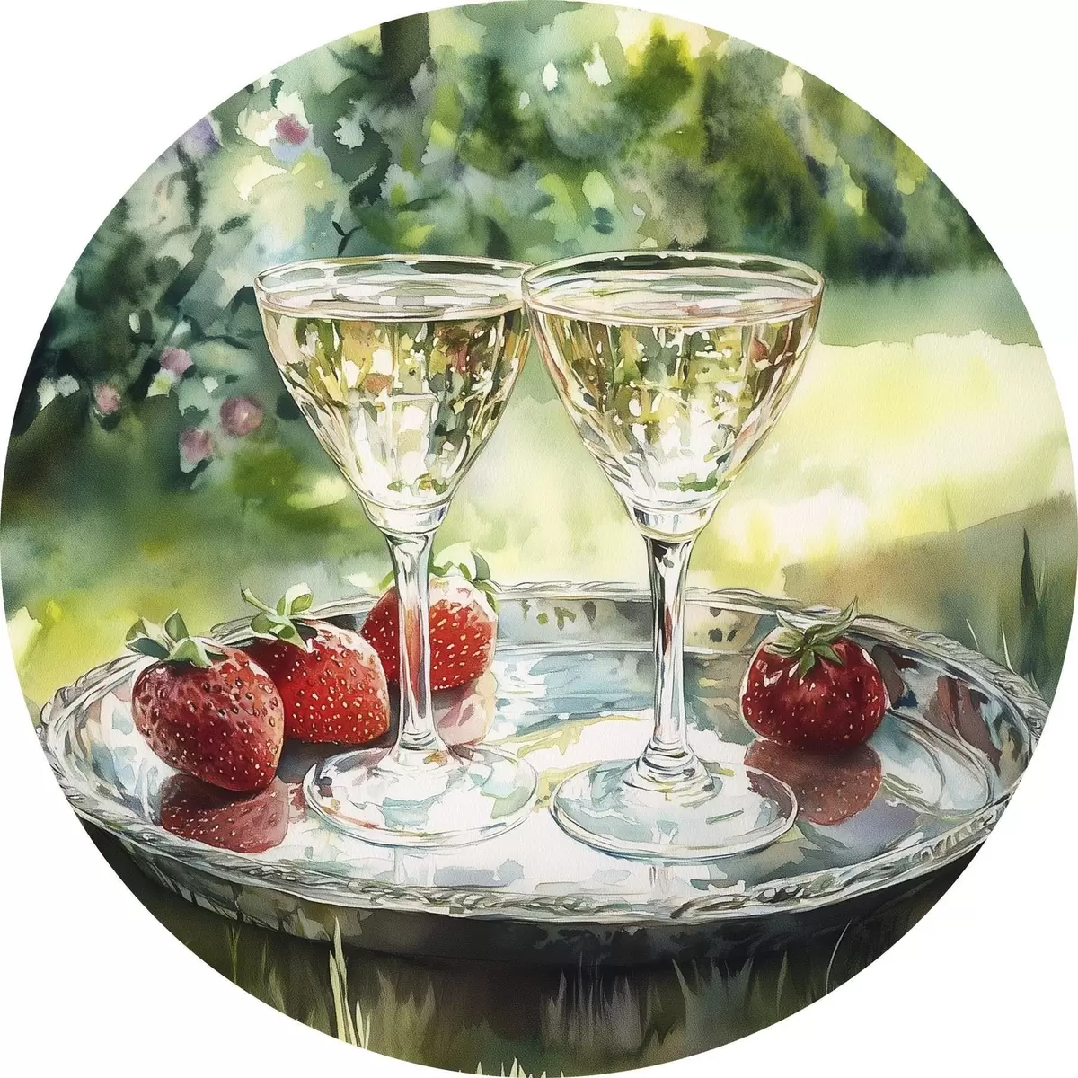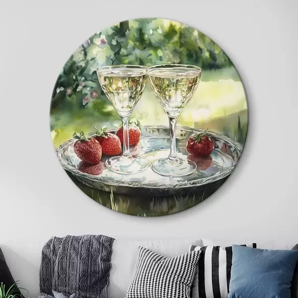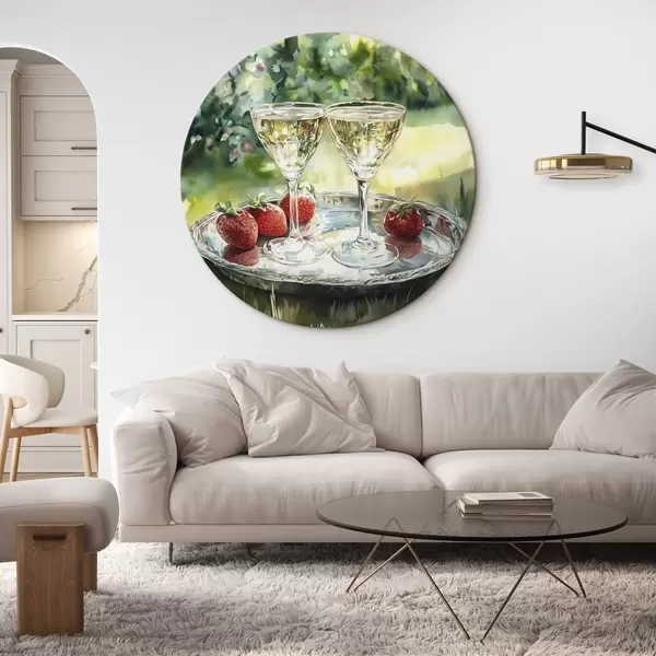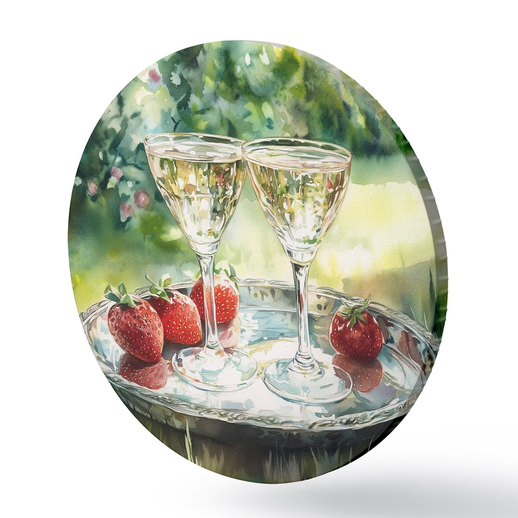 Picturi rotunde Picnic de vară cu șampanie și căpșuni, desen în stil acuarelă Nr r43055