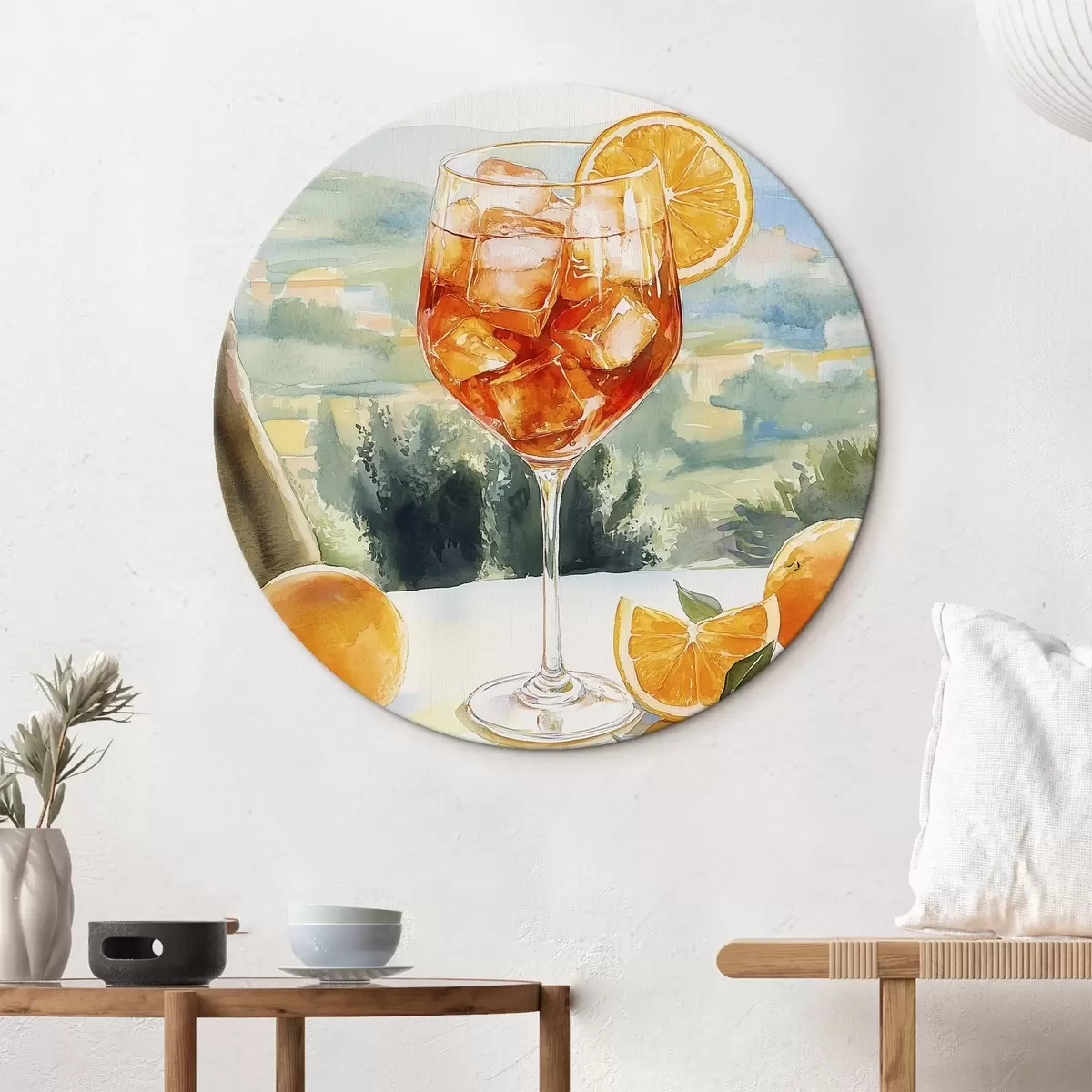 Picturi rotunde Cocktail de vară, Aperol Spritz, portocale, desen în stil acuarelă Nr r43058