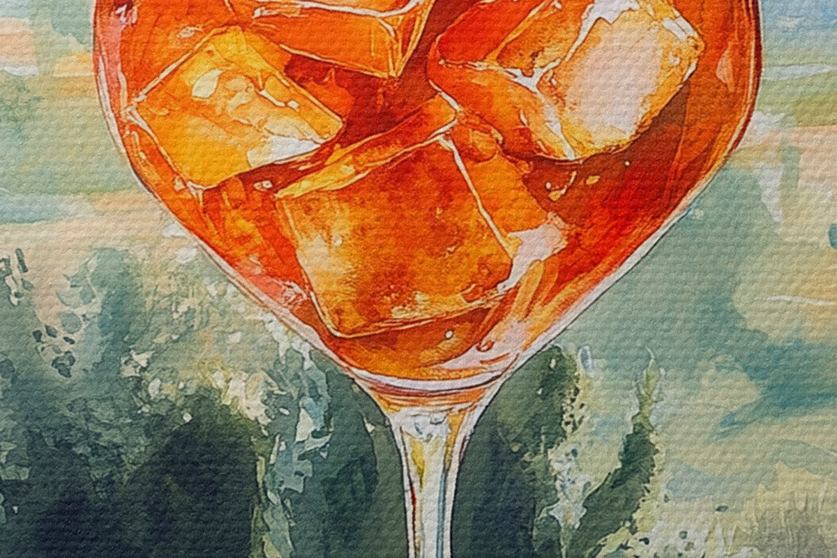 Picturi rotunde Cocktail de vară, Aperol Spritz, portocale, desen în stil acuarelă r43058