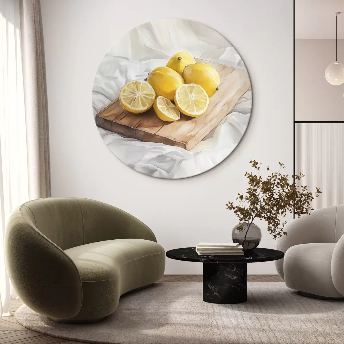Picturi rotunde Lămâi estetice pe placa de lemn, decorațiuni interioare, iluminare naturală Nr r43062
