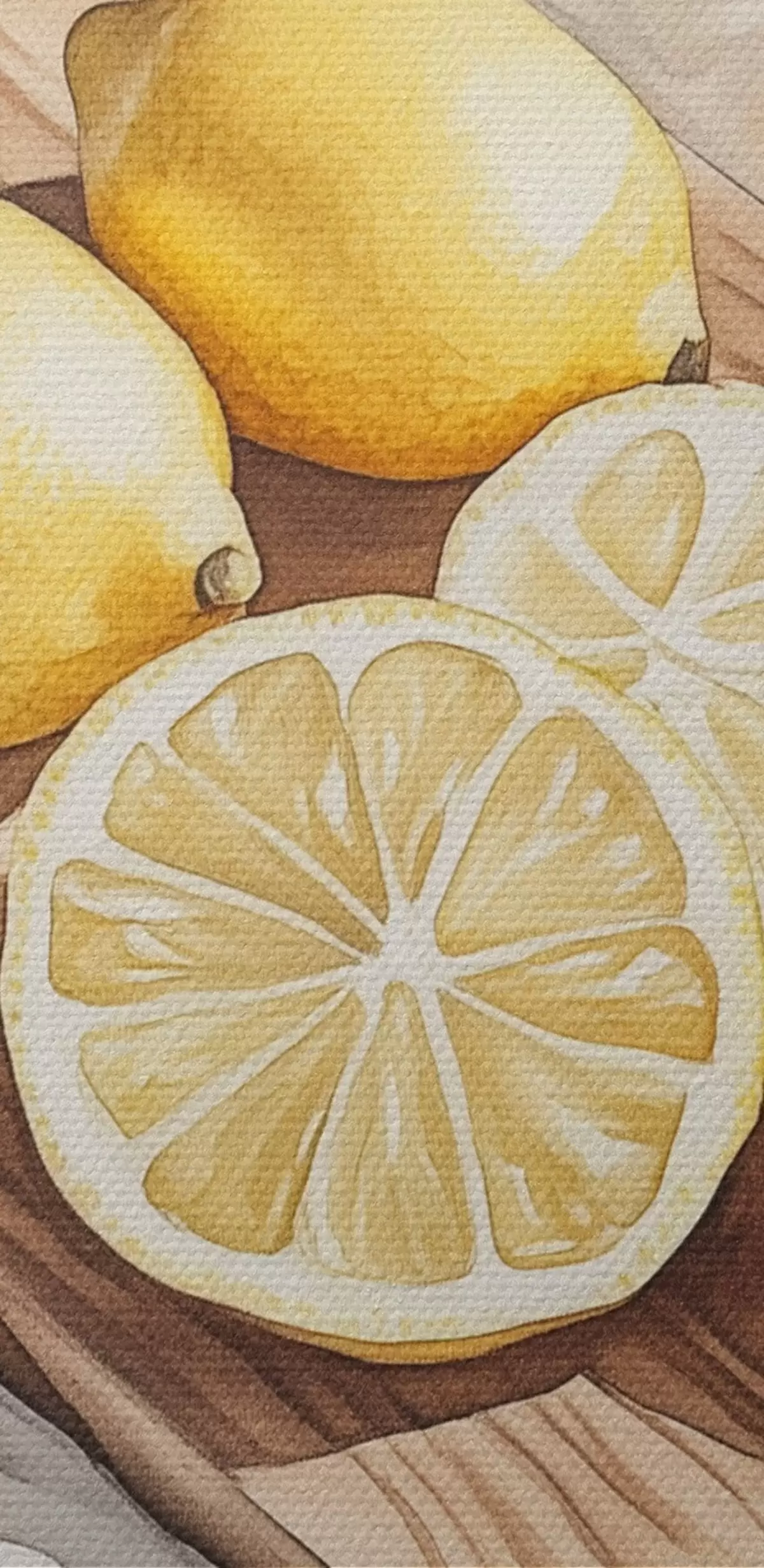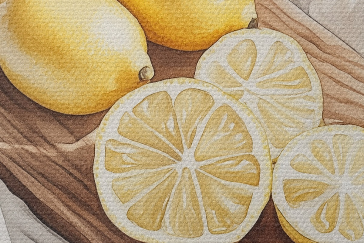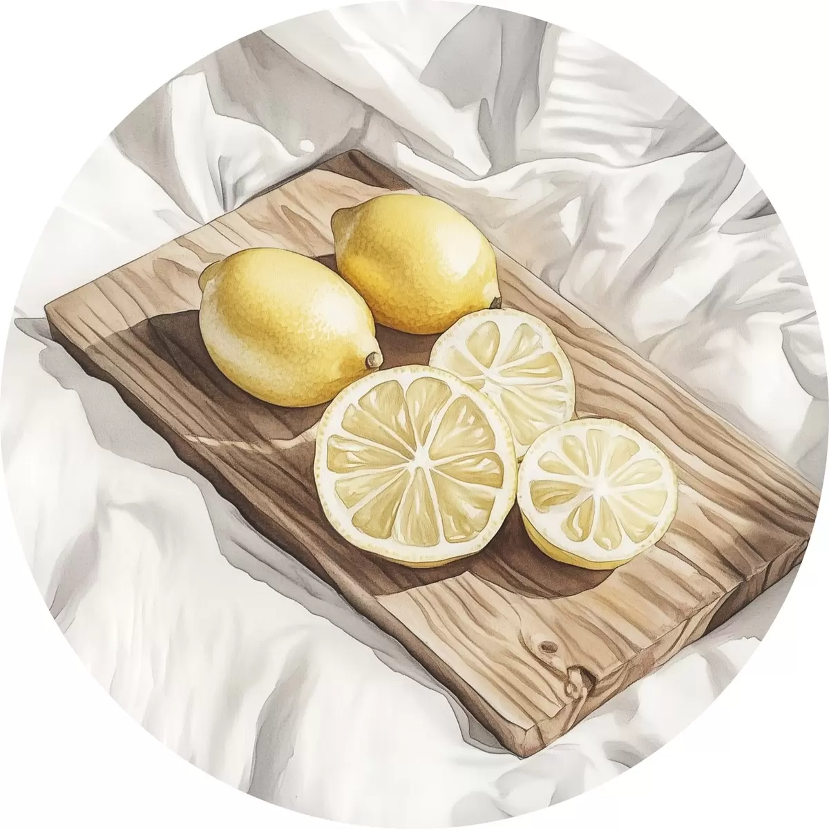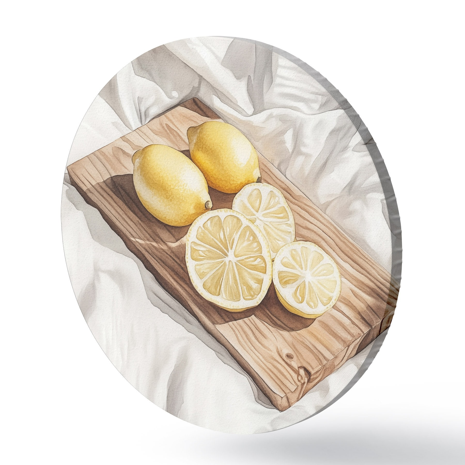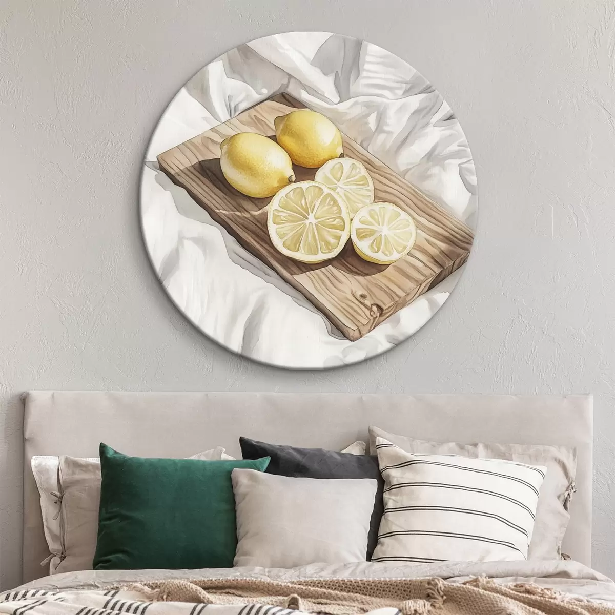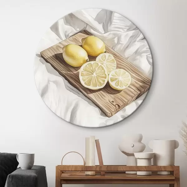 Picturi rotunde Lămâi pe placa de lemn, acuarelă, stil rustic Nr r43064