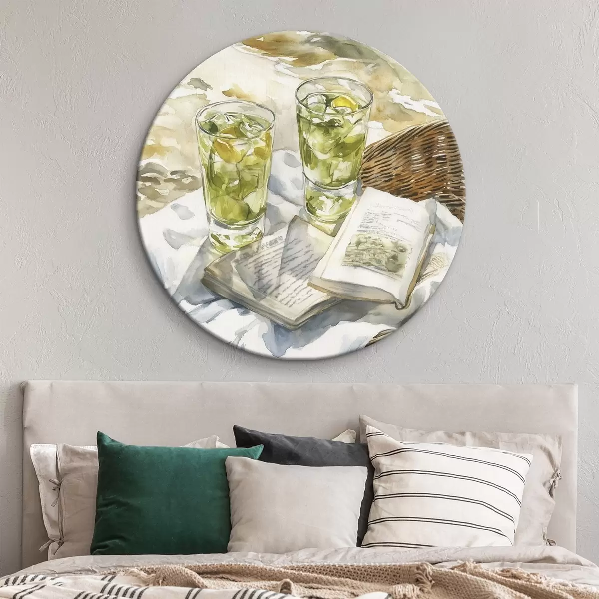 Picturi rotunde Picnic lângă mare, cocktailuri de vară, poezie, stil acuarelă r43068