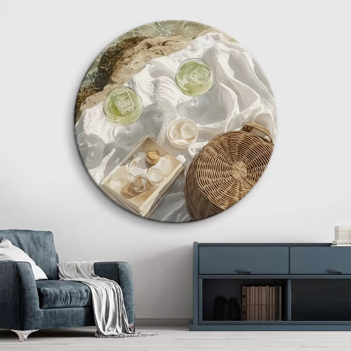 Picturi rotunde Estetică de vară, valuri oceanice, plajă, cocktailuri, stil acuarelă Nr r43069