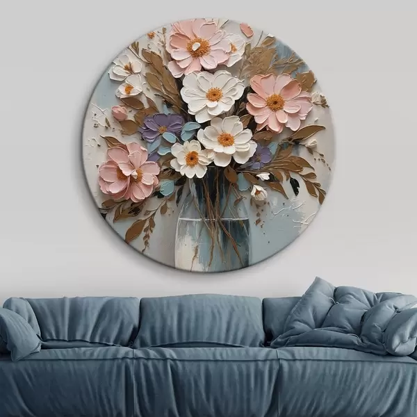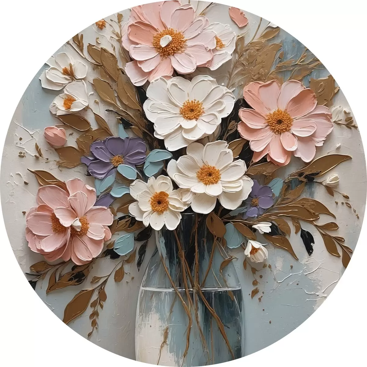 Picturi rotunde Flori roz și albe într-o vază transparentă Nr r43089