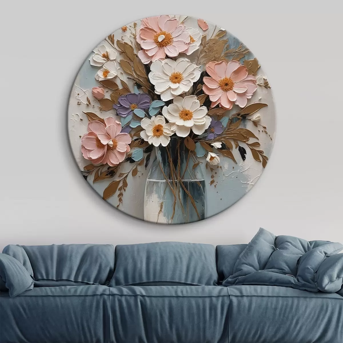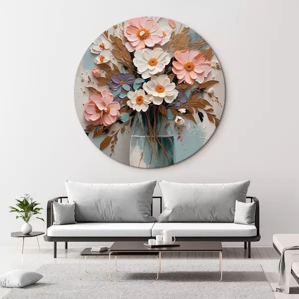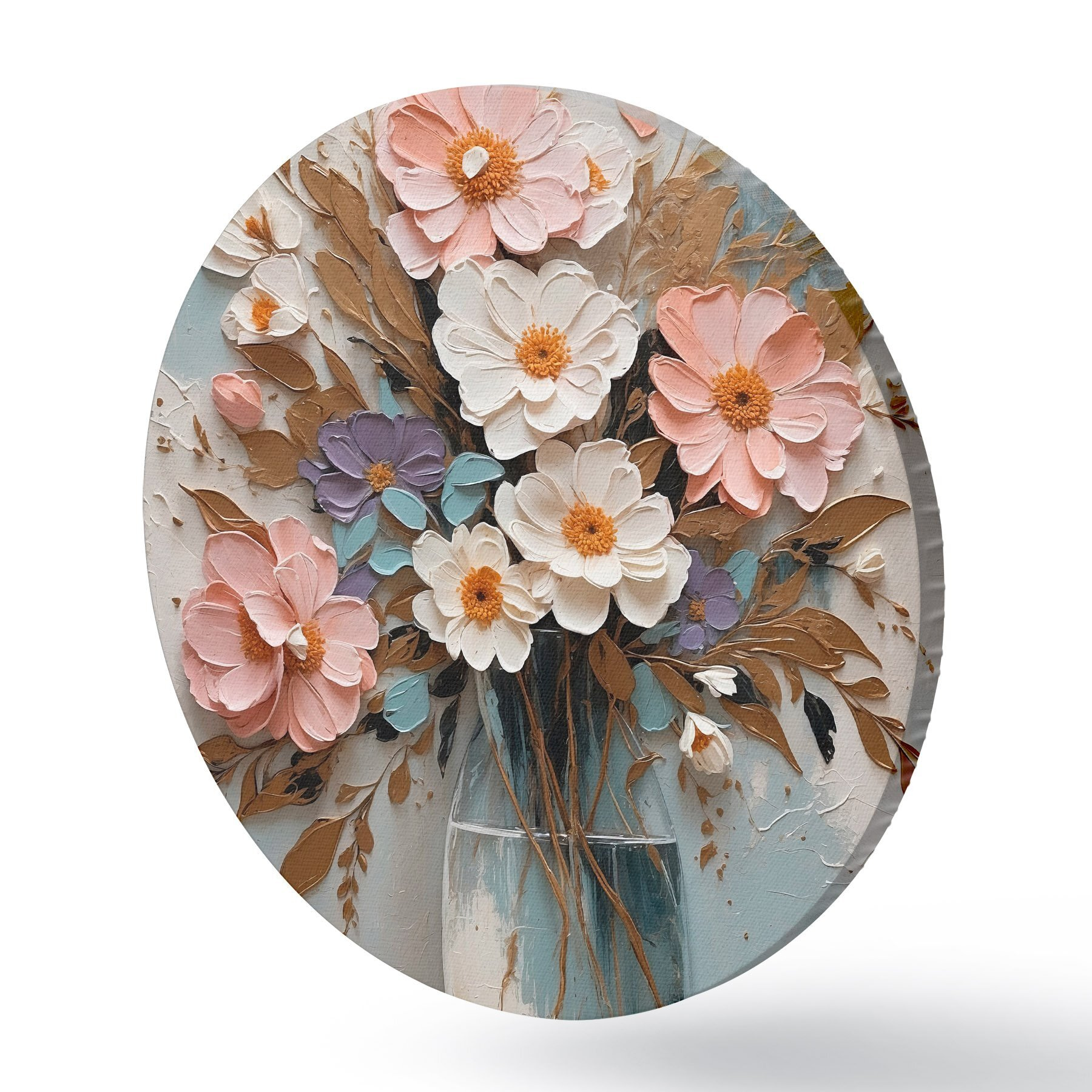 Picturi rotunde Flori roz și albe într-o vază transparentă r43089