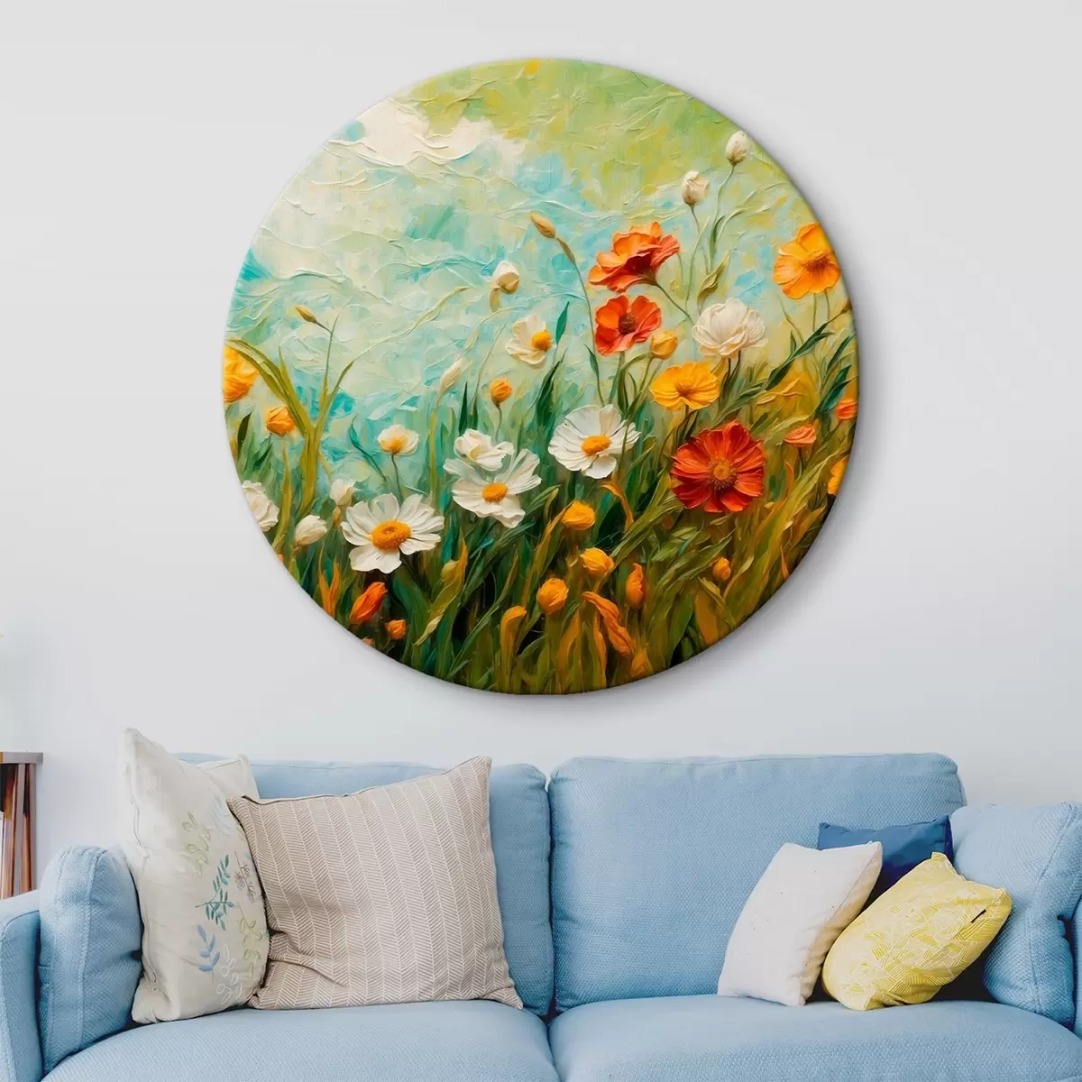 Picturi rotunde Câmp de flori pe fundal albastru abstract cer Nr r43100