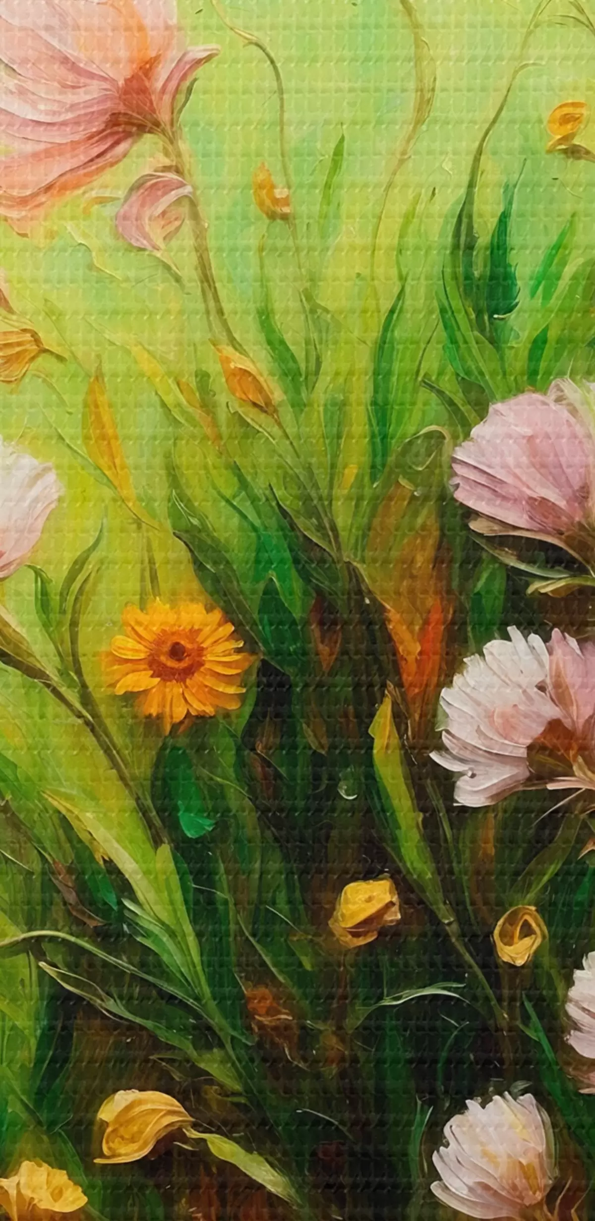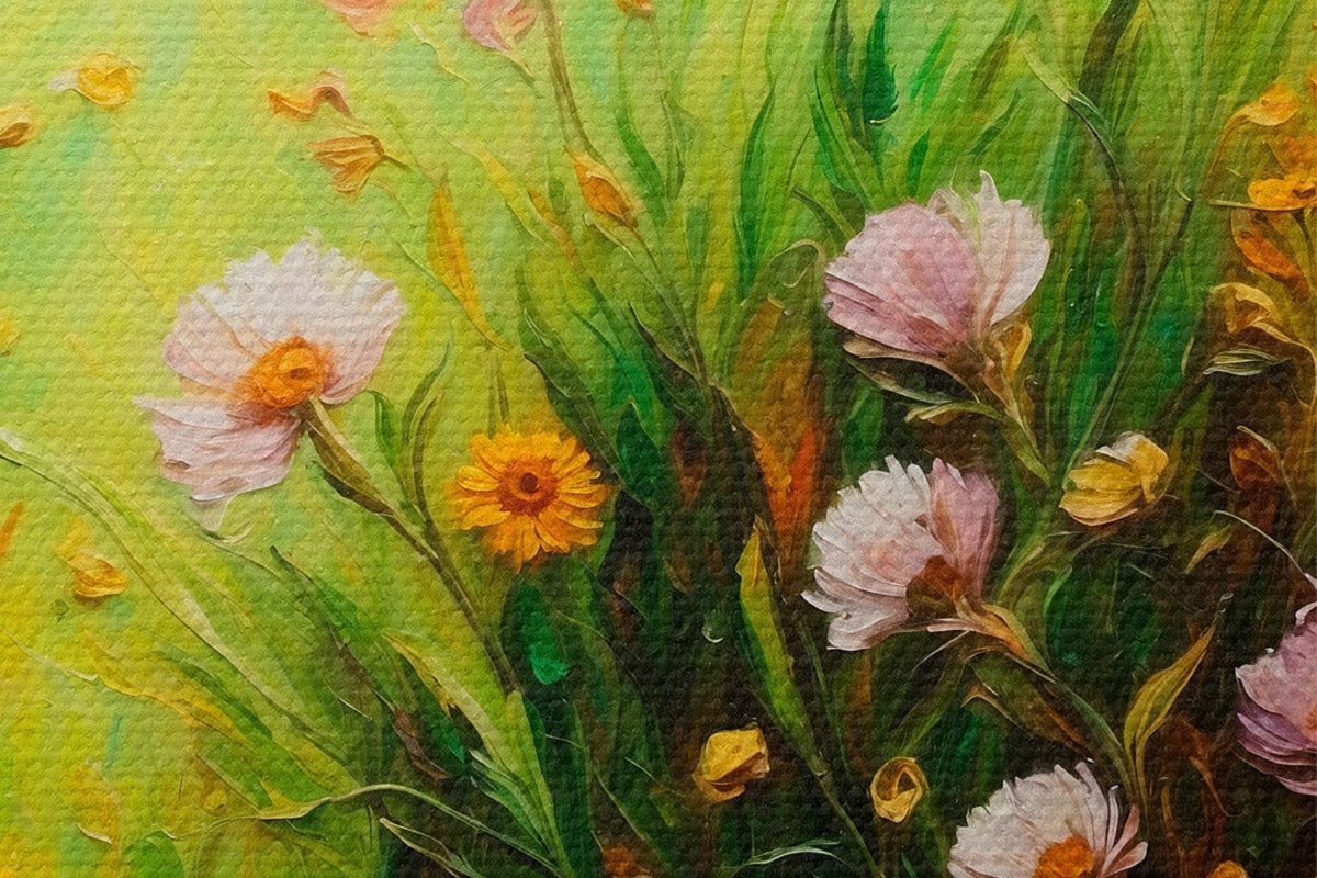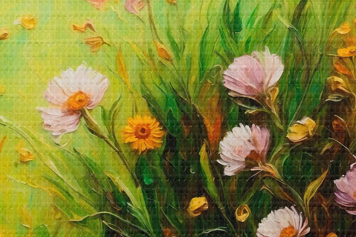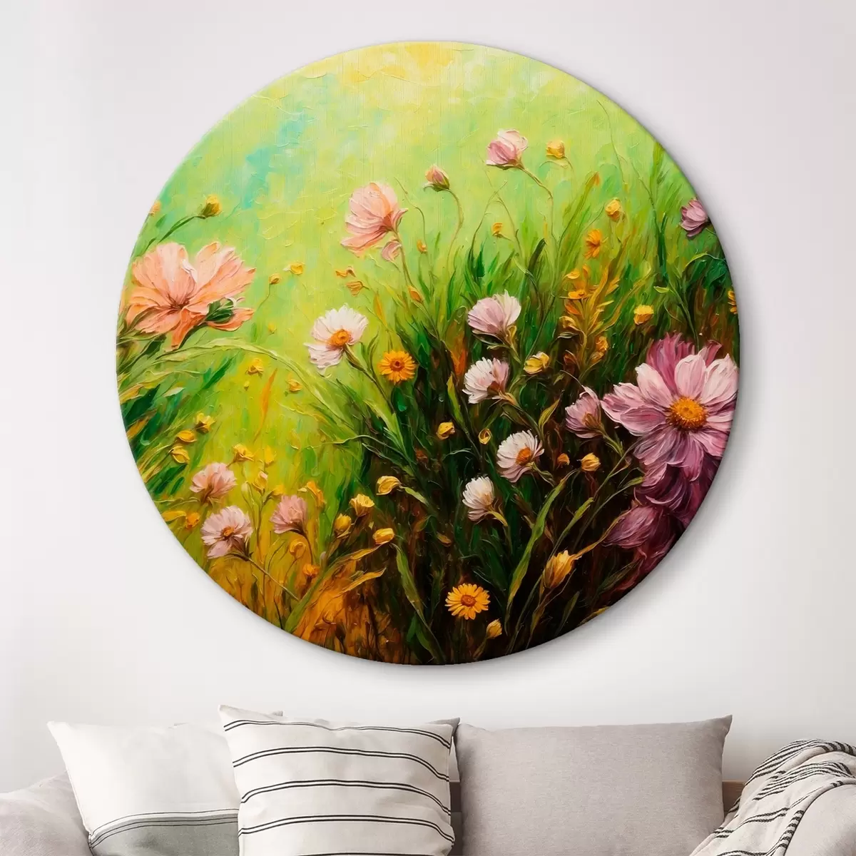 Picturi rotunde Câmp de flori pe fundal verde abstract Nr r43101