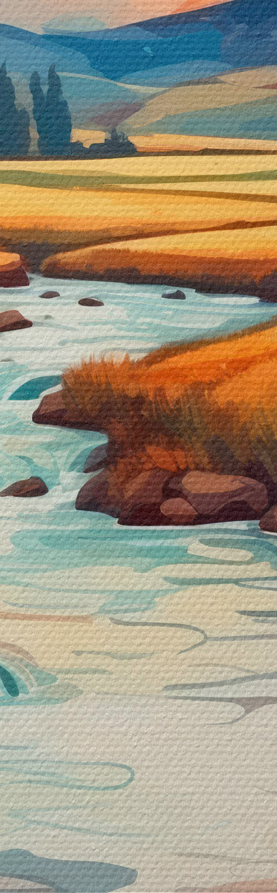 Picturi rotunde Stream în domeniul în stilul de pictură acuarelă r43110
