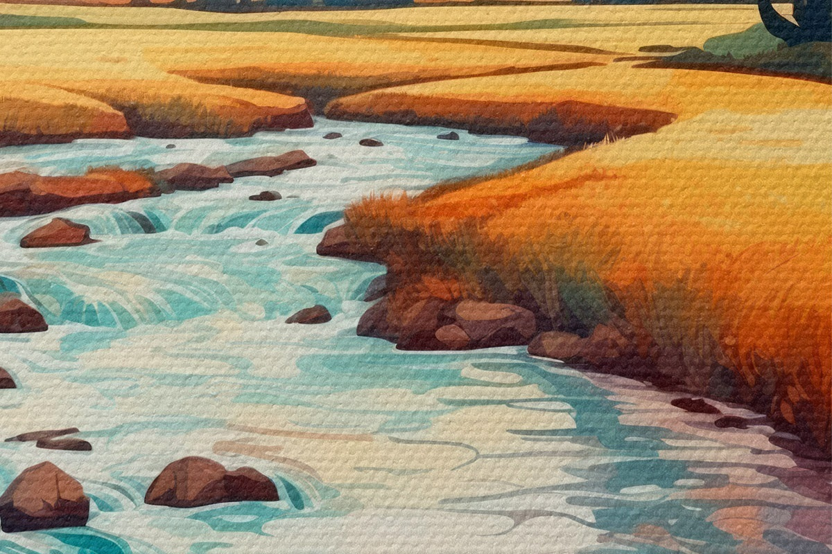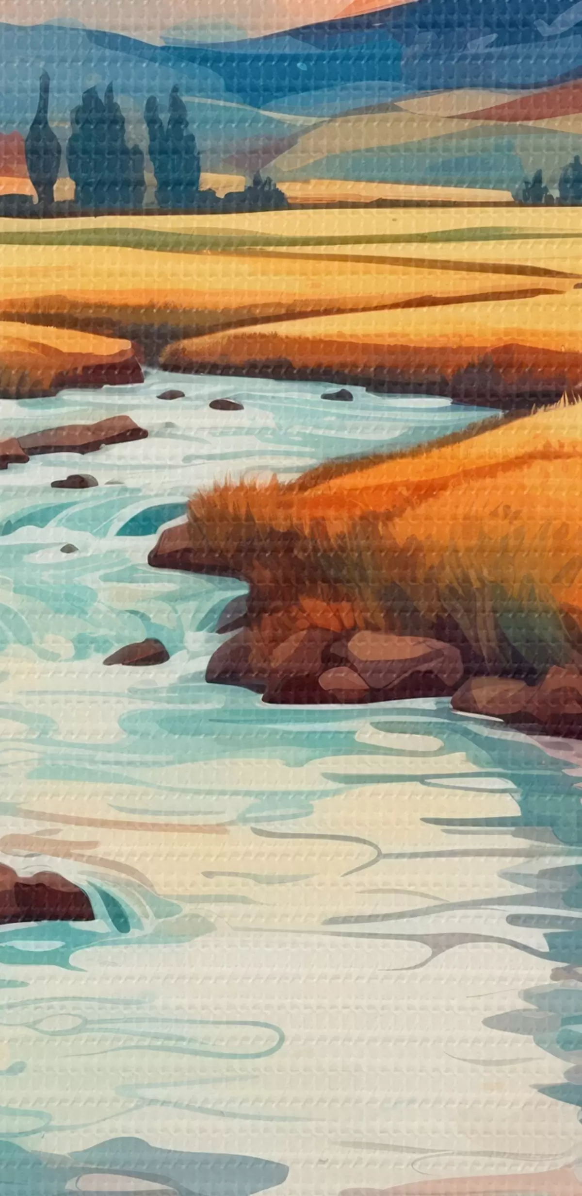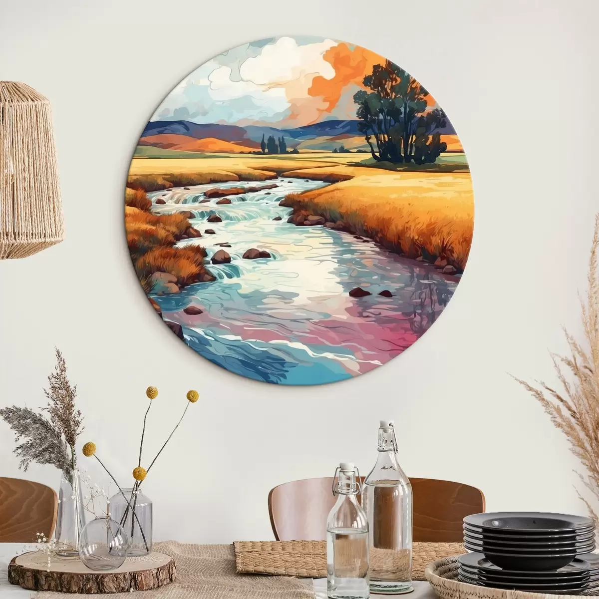 Picturi rotunde Stream în domeniul în stilul de pictură acuarelă r43110