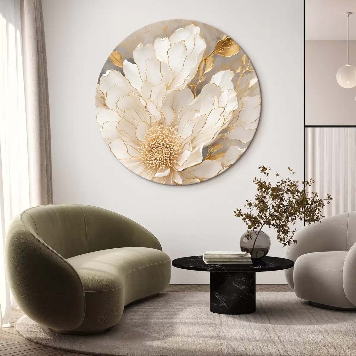 Picturi rotunde Floare albă cu frunze în stilul picturii acrilice Nr r43115