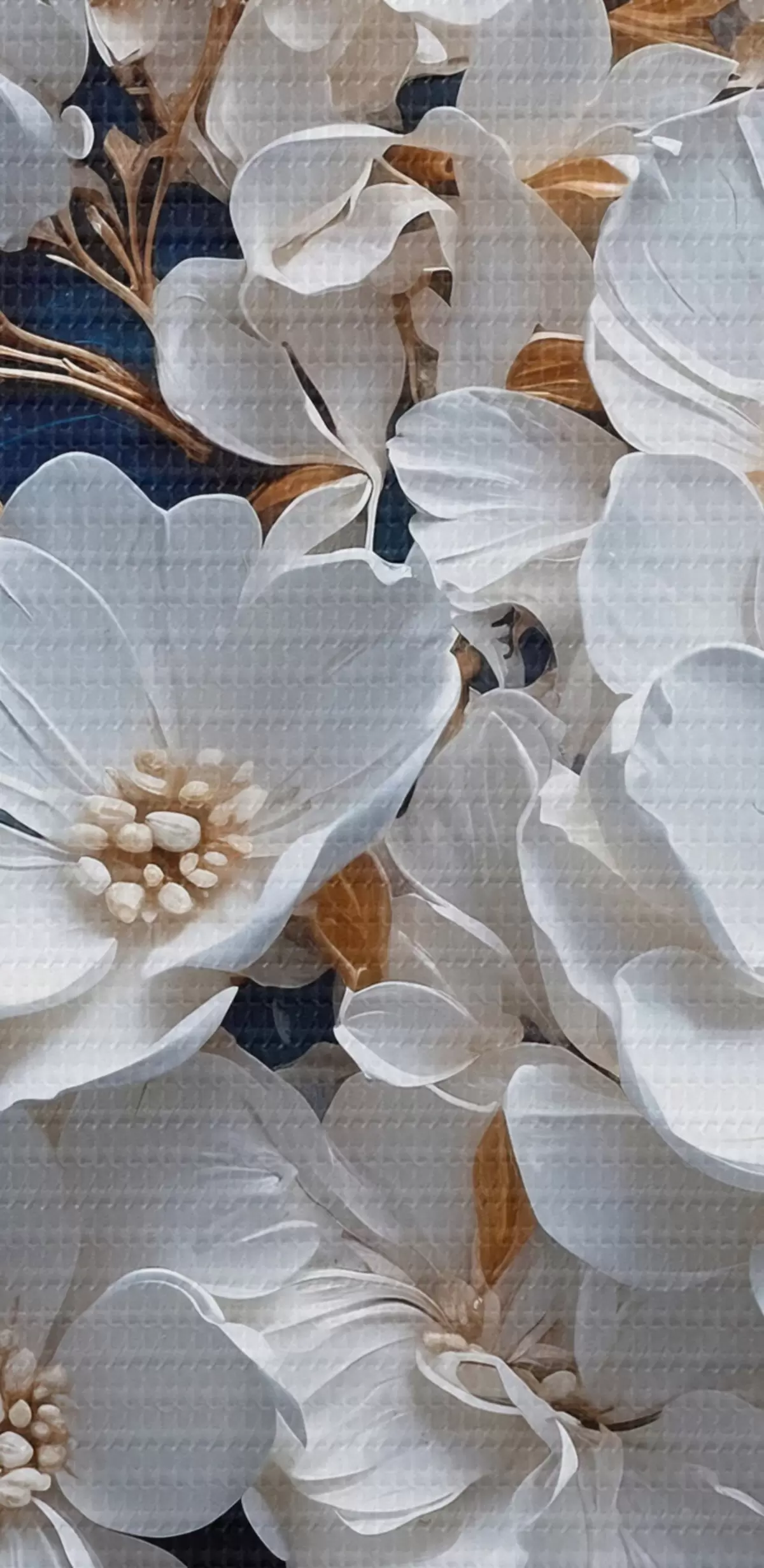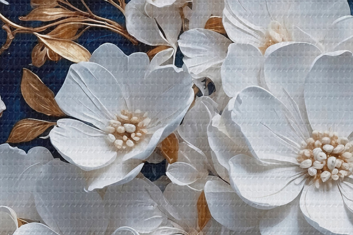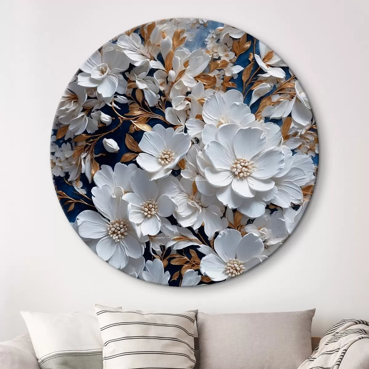 Picturi rotunde Flori albe pe fundal albastru Nr r43116