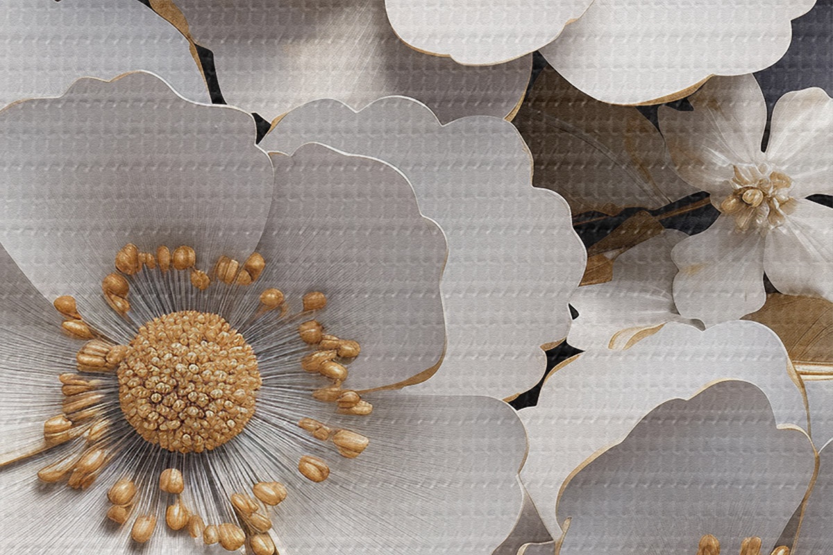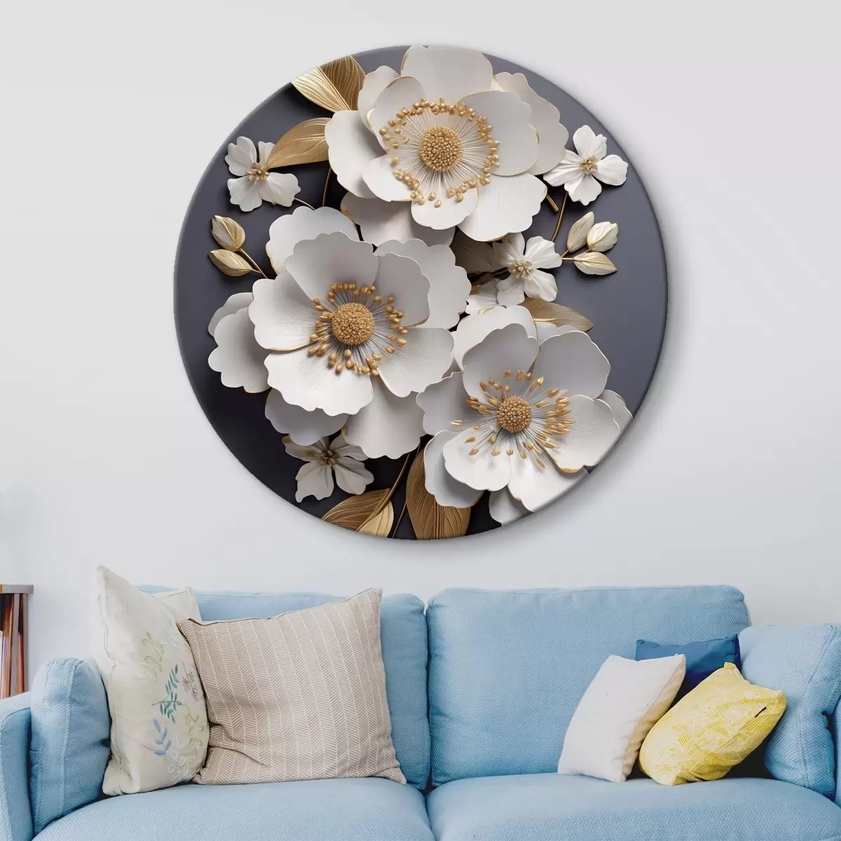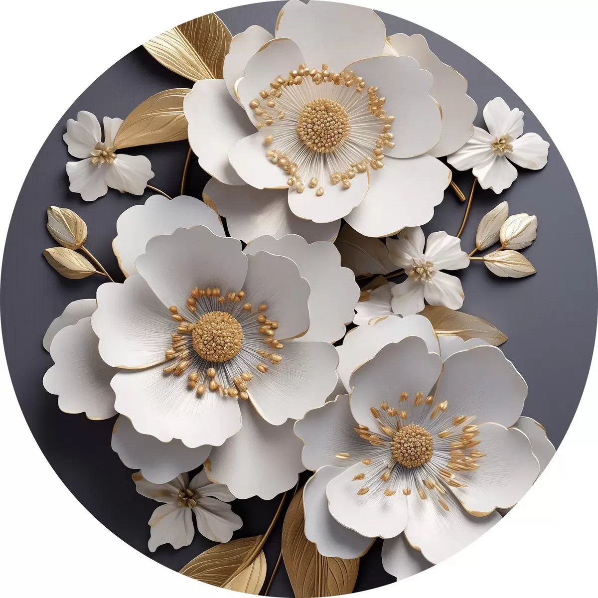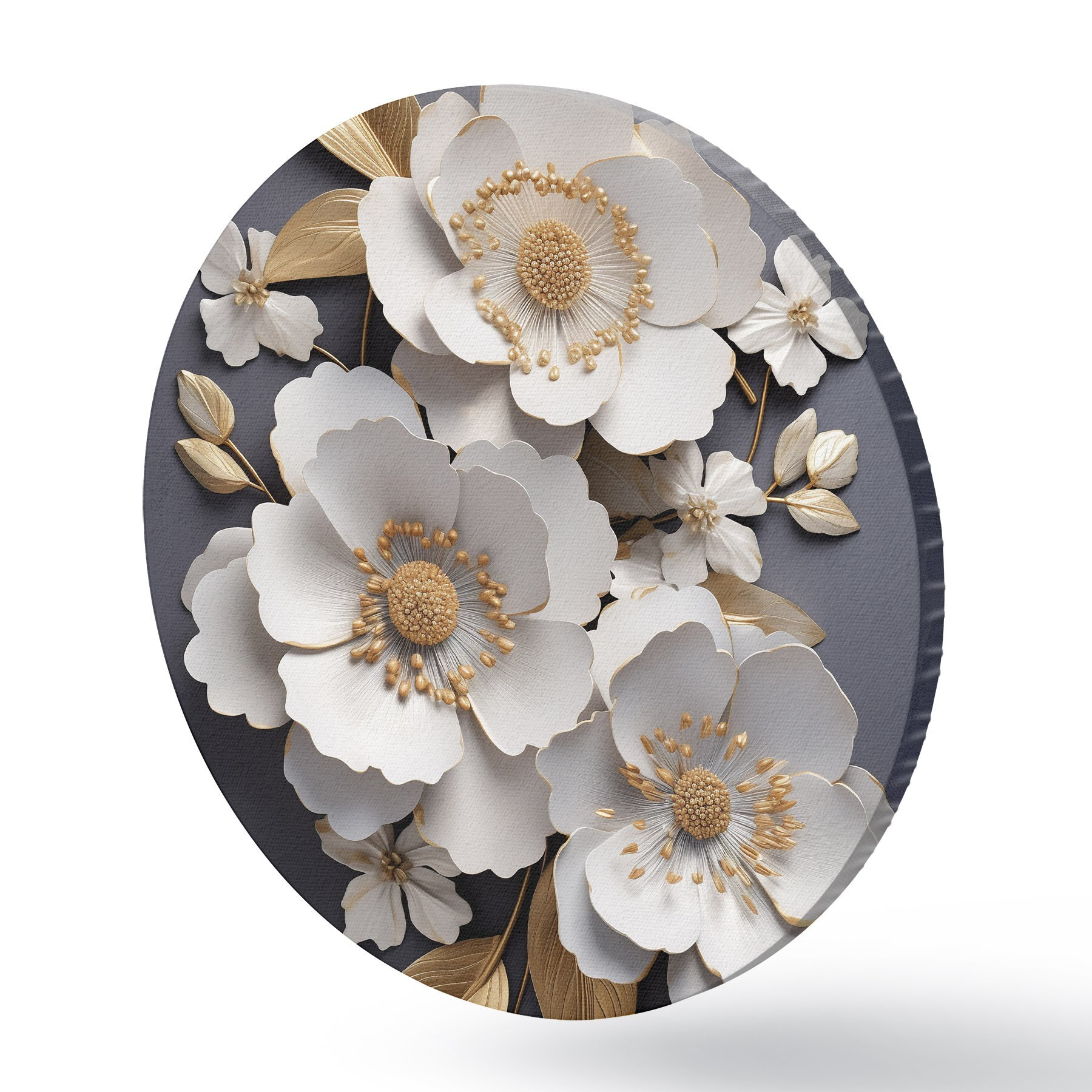 Picturi rotunde Trei flori albe pe un fundal întunecat r43129