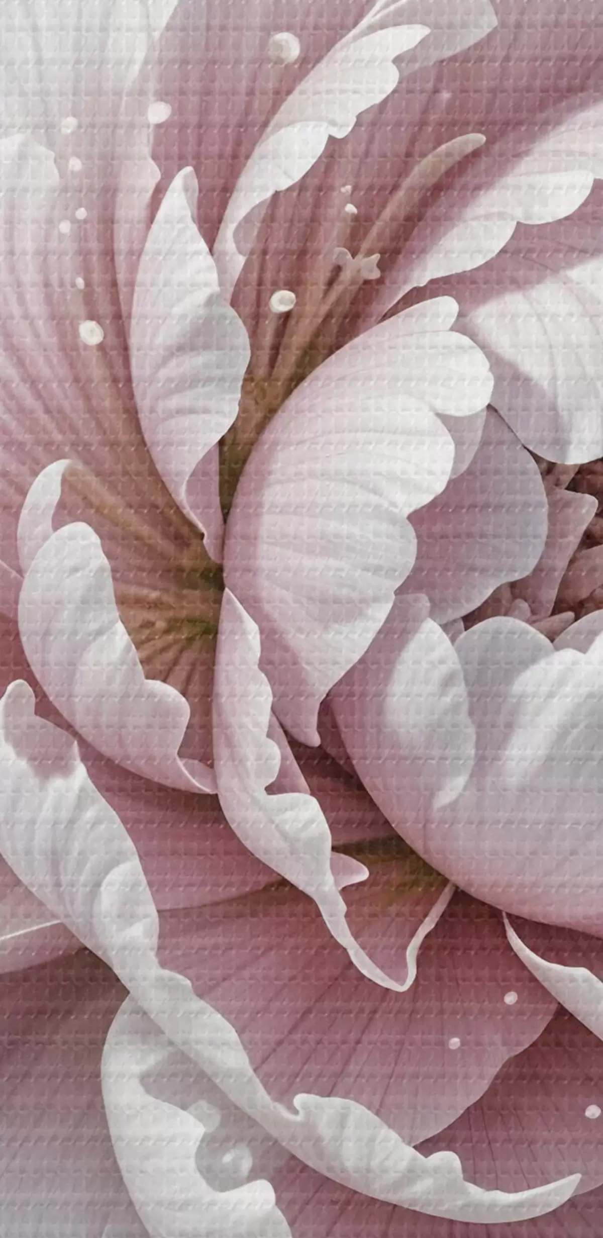Picturi rotunde Bujori roz deschis și albe cu picături de apă pe petale, fundalul este o suprafață albă Nr r43158