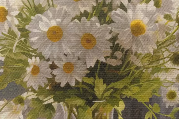 Picturi rotunde Ulei pictura imitație de o vază cu margarete albe pe un pervaz, zi însorită, paleta de culori calde r43171