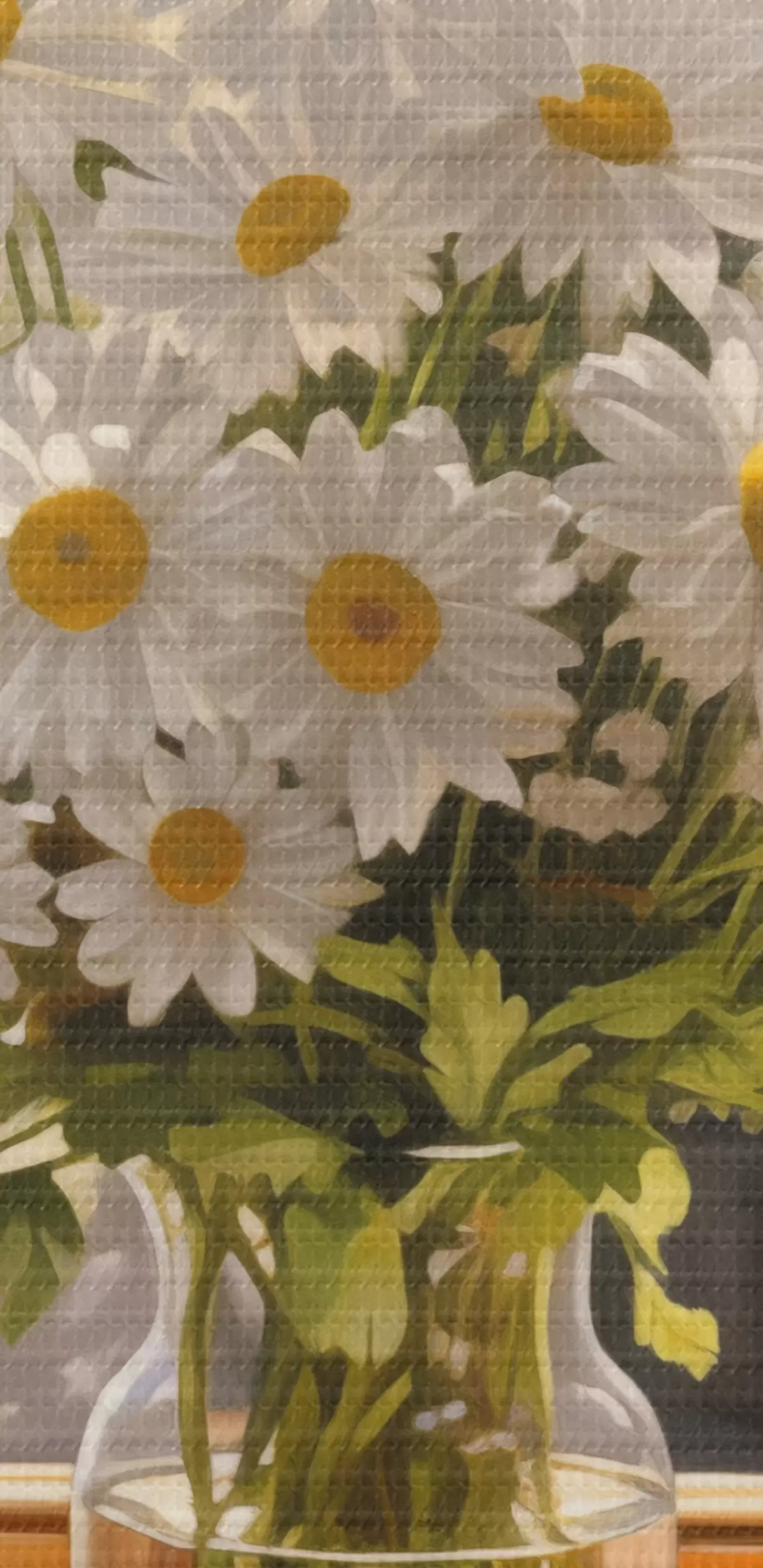 Țesătura fină a firelor de pe această pânză seamănă cu suprafața pânzelor artiștilor profesioniști.