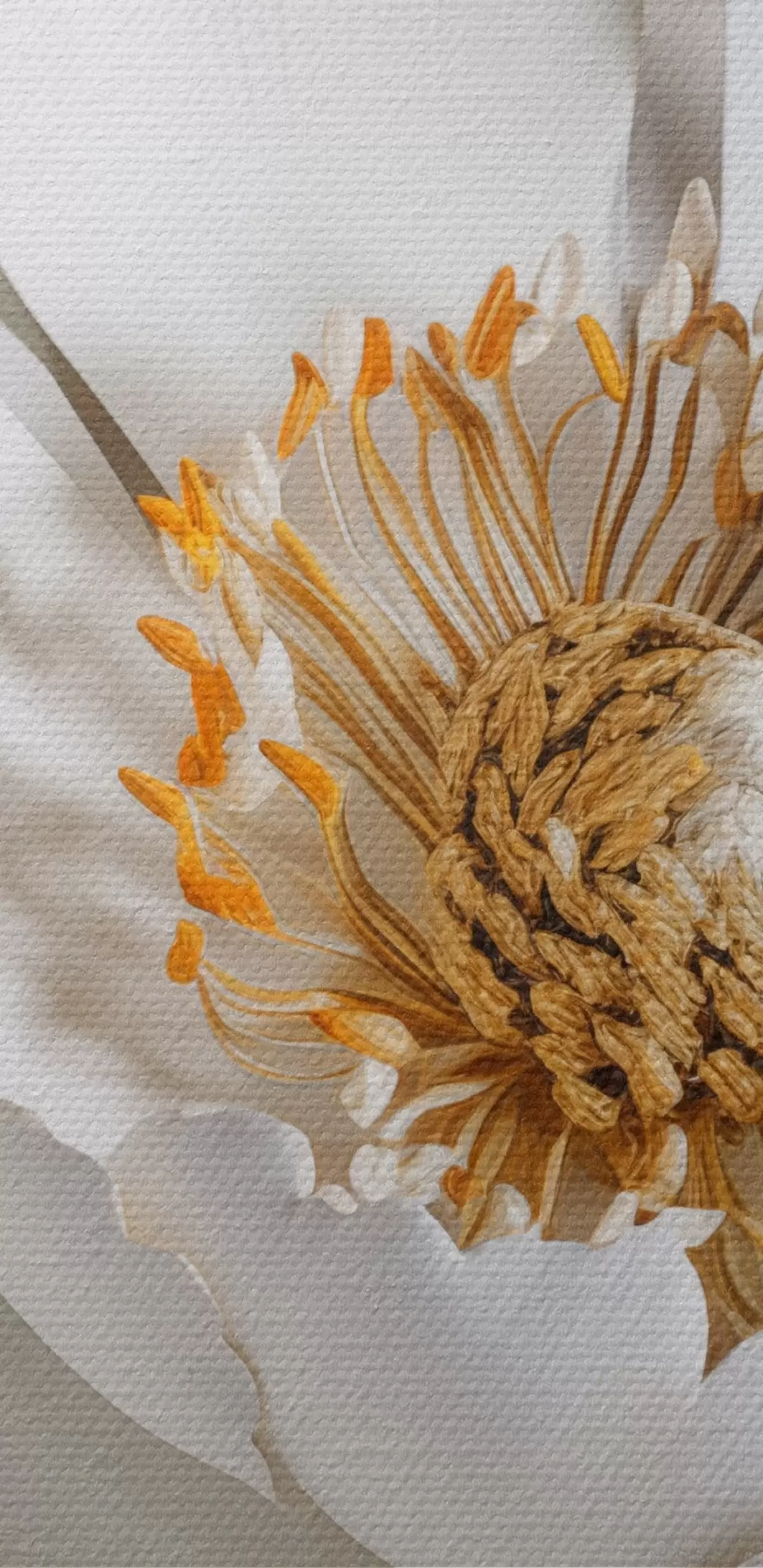 Țesătura fină a firelor de pe această pânză seamănă cu suprafața pânzelor artiștilor profesioniști.