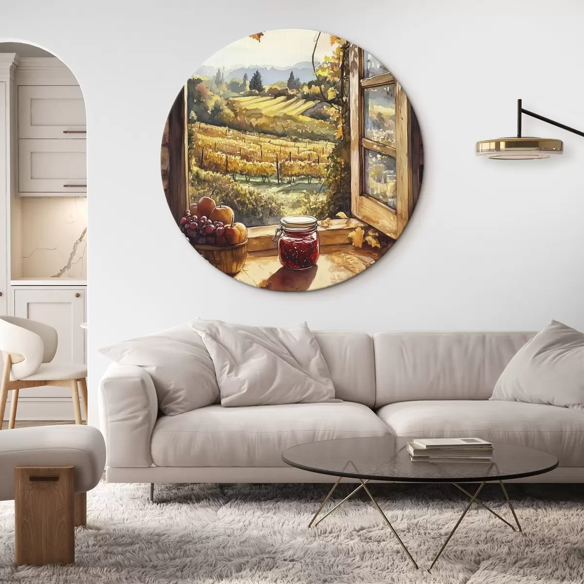 Picturi rotunde Recoltă în sat, rustic, fructe, gem, peisaje naturale, stil acuarelă r43186