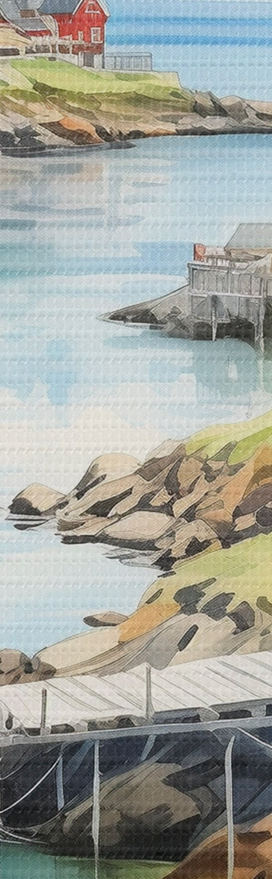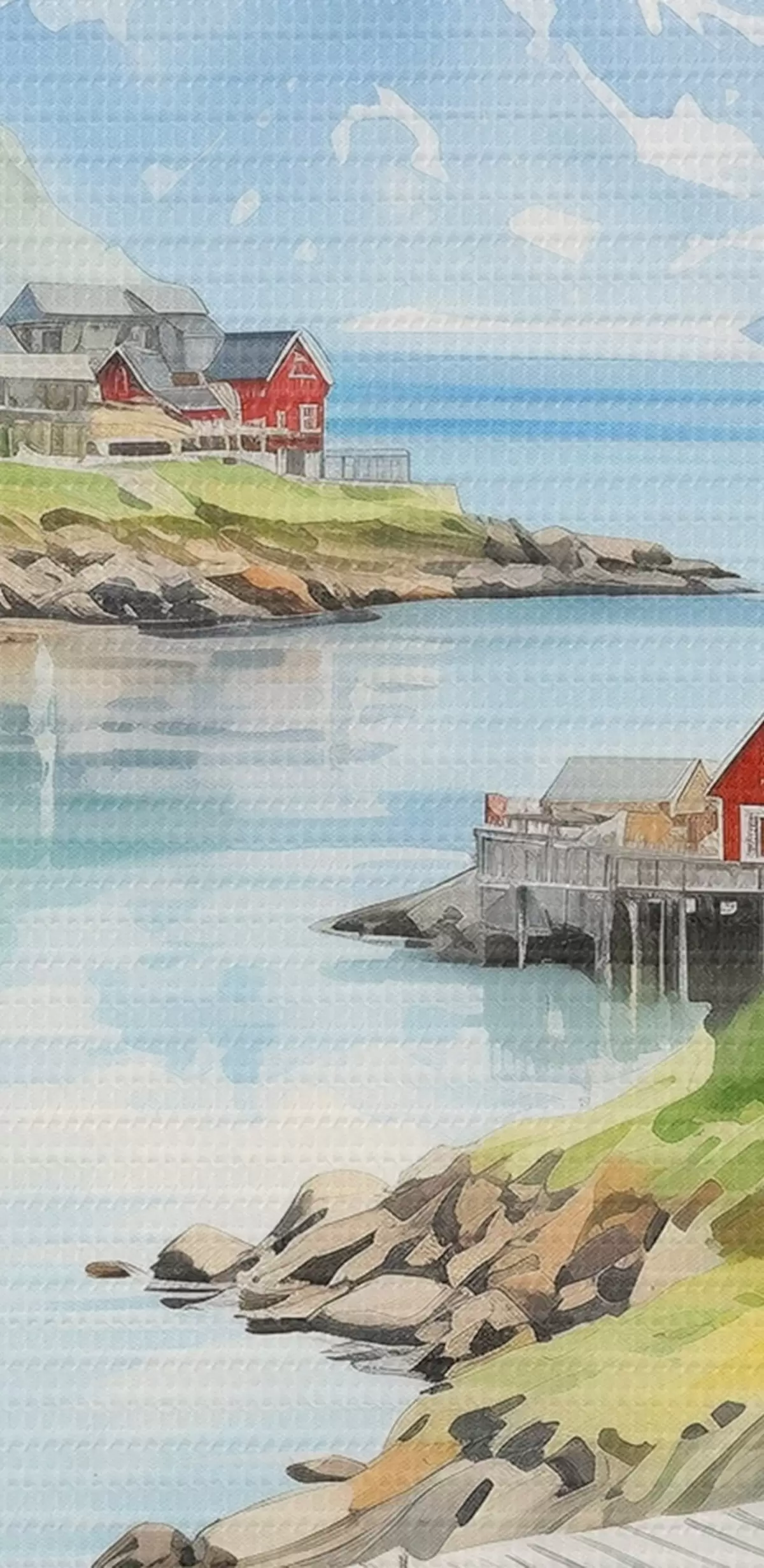 Picturi rotunde Insulele Lofoten peisaj de vară, case roșii, munți, bărci Nr r43187