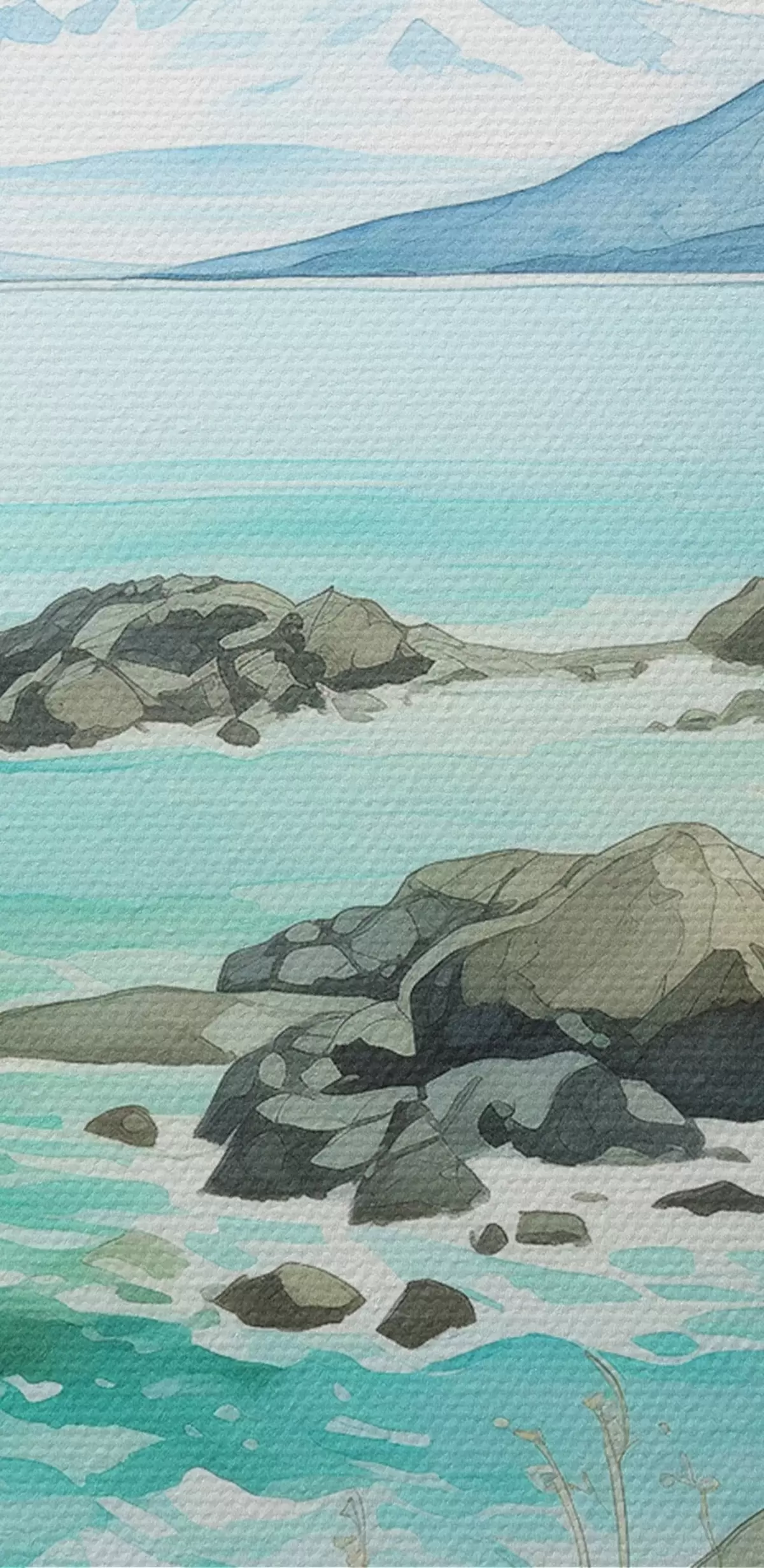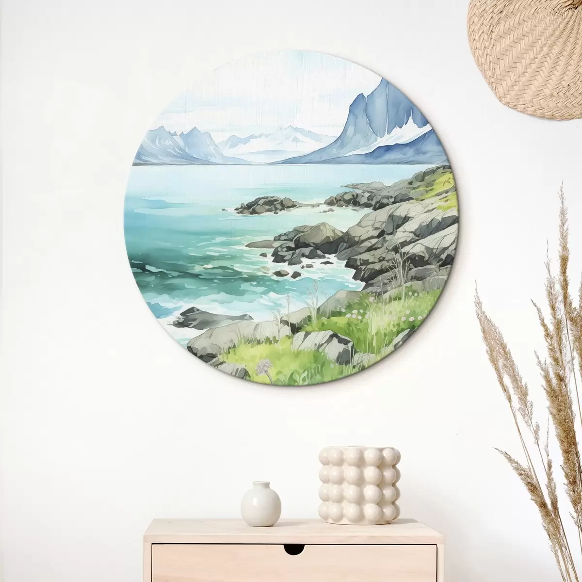 Picturi rotunde Norvegia natură, fiorduri, peisaj de vară, iarbă verde, munți, stil acuarelă Nr r43188