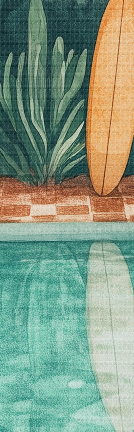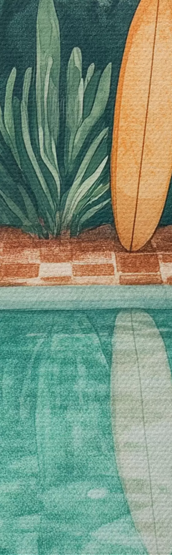 Picturi rotunde Vintage piscină de vară, pădure tropicală, verdeață, palmieri, stil acuarelă r43191