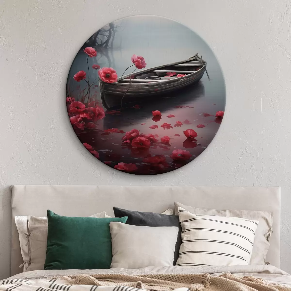 Picturi rotunde Barcă și flori de mac pe lac r43203