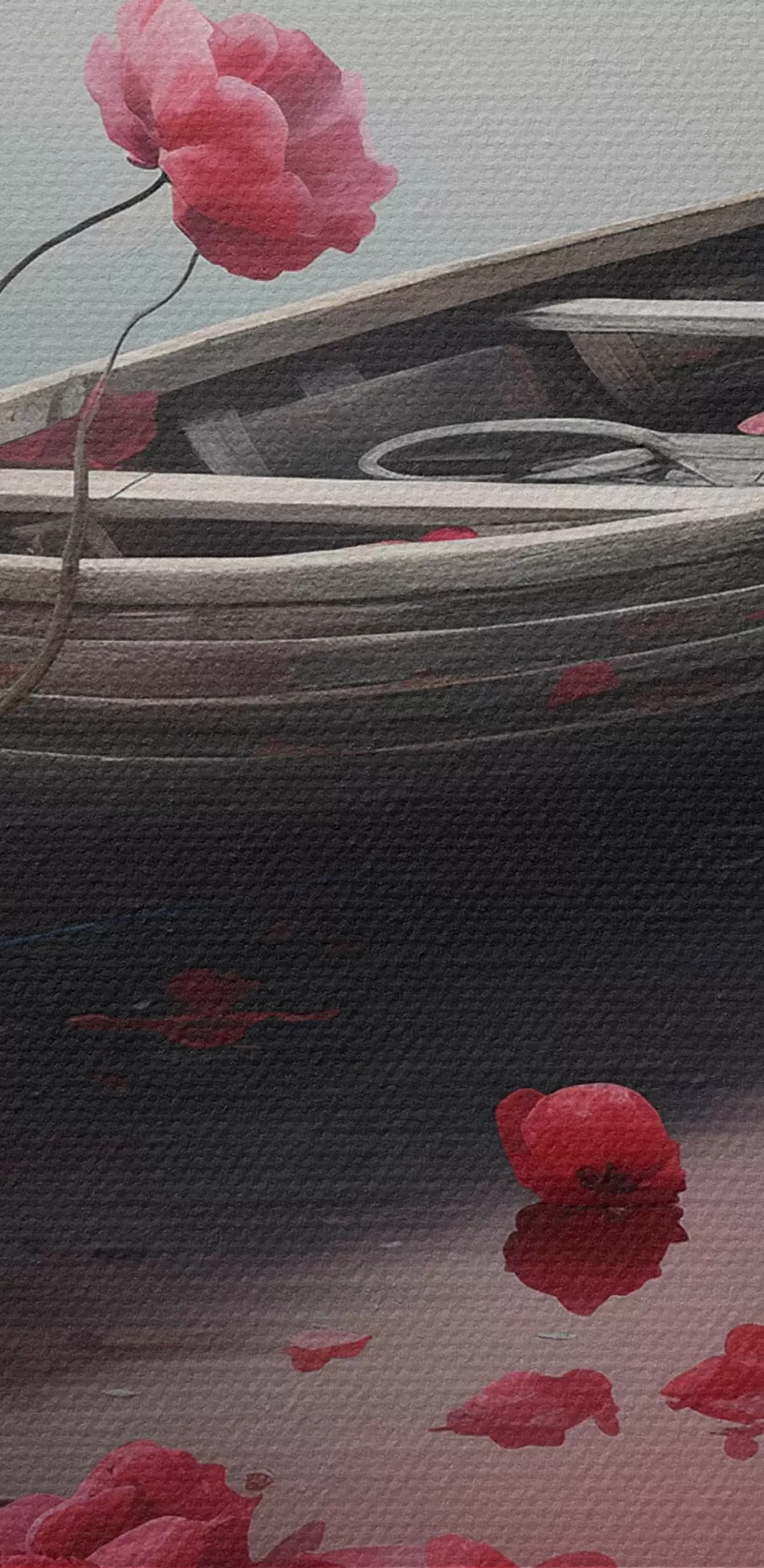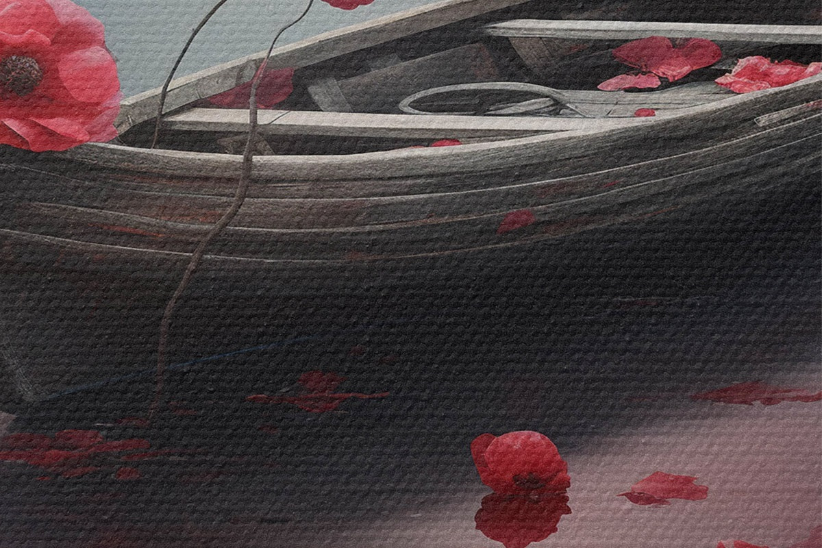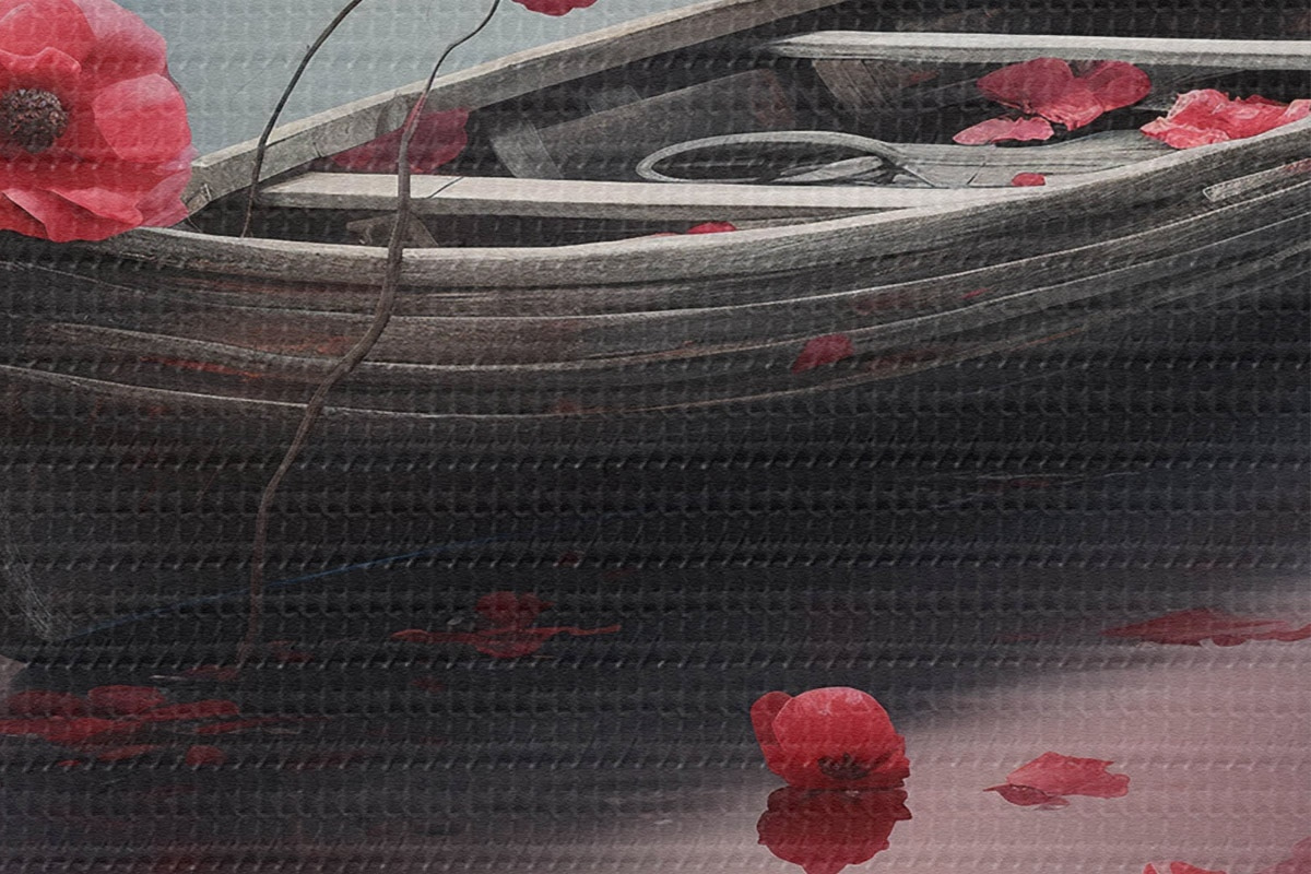 Picturi rotunde Barcă și flori de mac pe lac Nr r43203