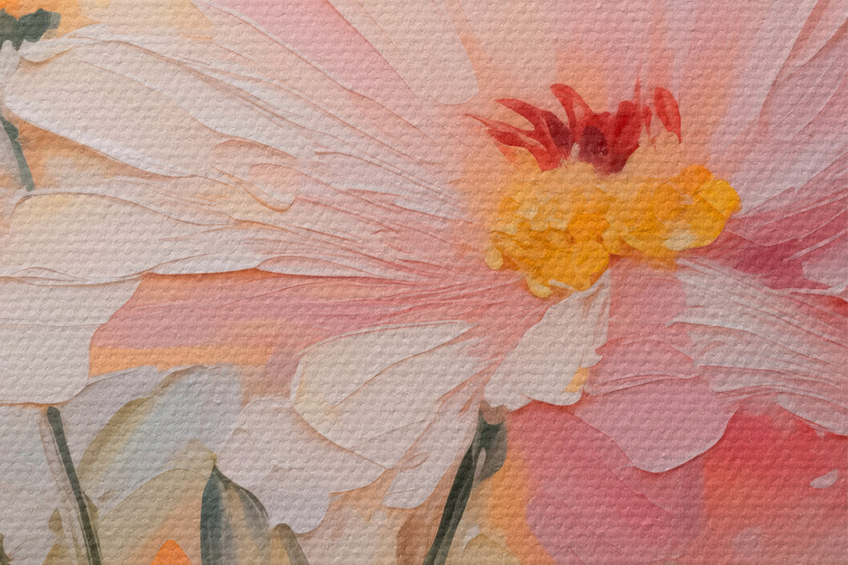 Țesătura fină a firelor de pe această pânză seamănă cu suprafața pânzelor artiștilor profesioniști.