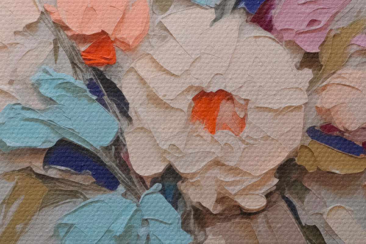 Trei tipuri de materiale sunt disponibile pentru comandă: Economic Canvas - un material dens și durabil pentru imprimarea digitală, identic cu pânza de pictor, suprafață impermeabilă, reproducere realistă a detaliilor, material cu granulație medie. Premium Canvas - textura seamănă cu cea a pânzei unui pictor (fire mici împletite). Reproducere moale, detaliată a imaginii pe o suprafață mată. Eco-Premium - țesătură 100% bumbac de înaltă calitate. Datorită fibrelor naturale de bumbac, materialul este durabil și rezistent la uzură. Reproducere excelentă a culorilor și a detaliilor.