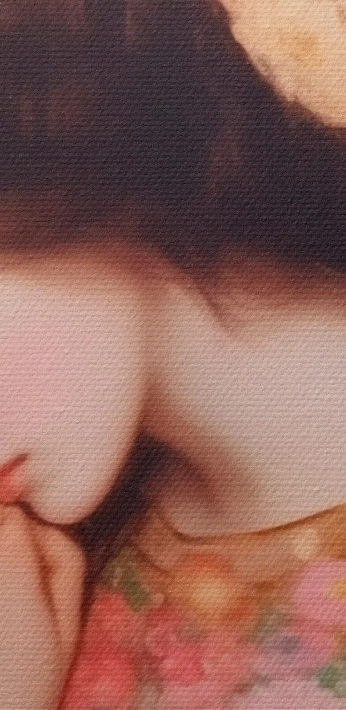 Țesătura fină a firelor de pe această pânză seamănă cu suprafața pânzelor artiștilor profesioniști.