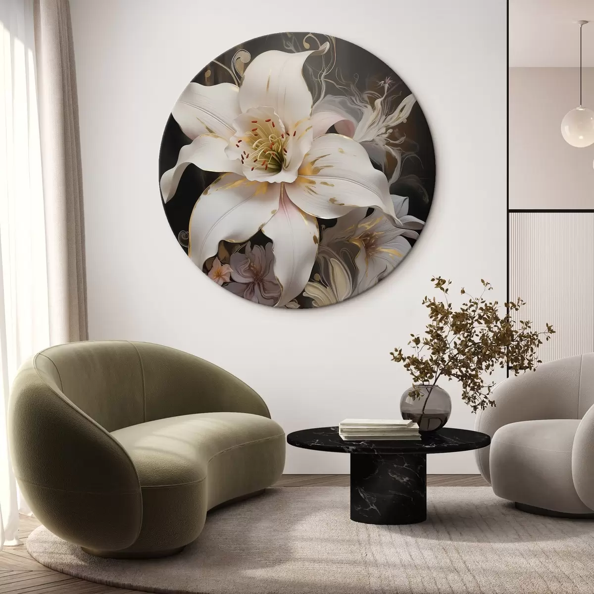 Picturi rotunde Close-up abstract floare de crin pe un fundal întunecat Nr r43254