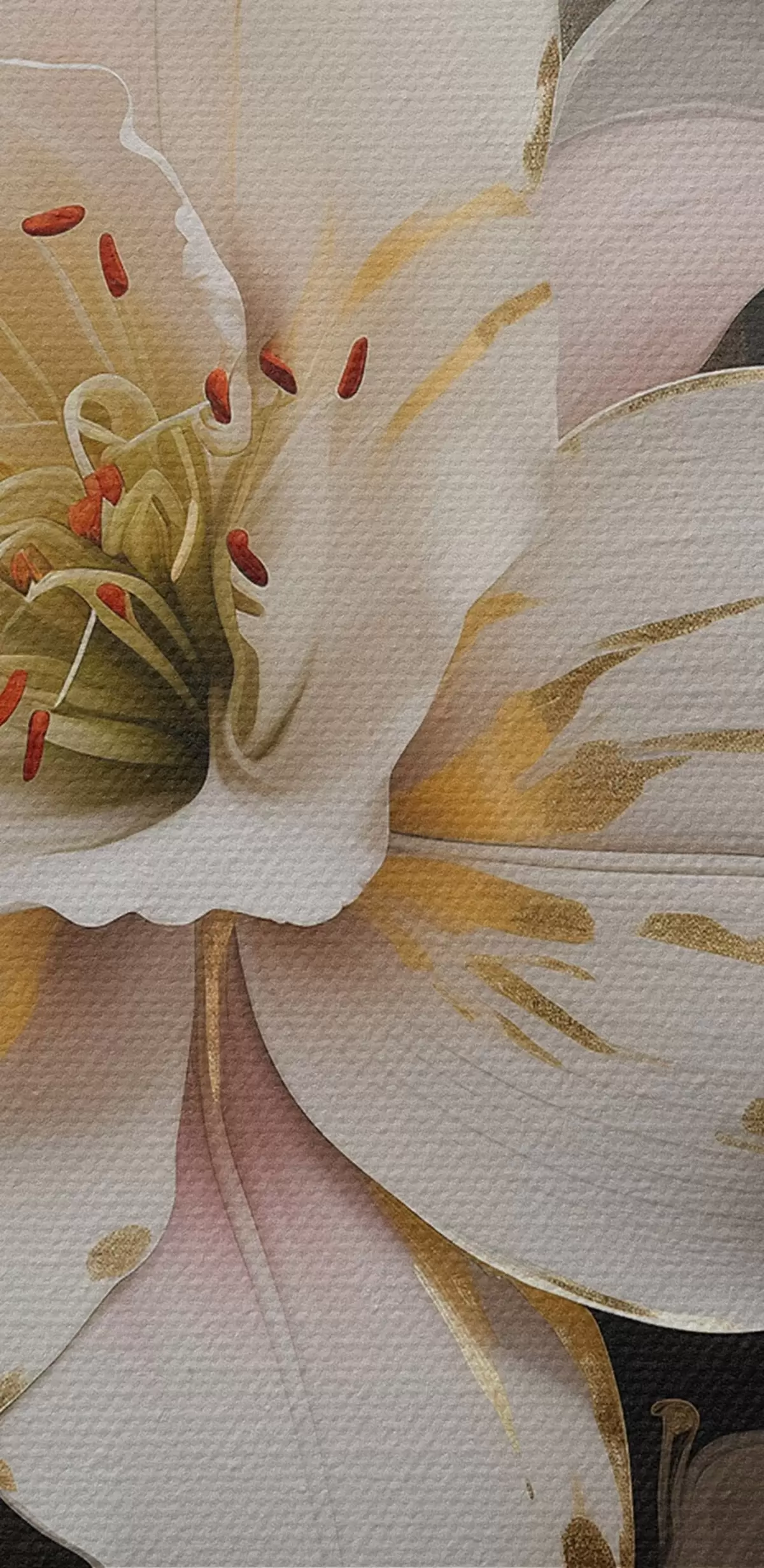 Trei tipuri de materiale sunt disponibile pentru comandă: Economic Canvas - un material dens și durabil pentru imprimarea digitală, identic cu pânza de pictor, suprafață impermeabilă, reproducere realistă a detaliilor, material cu granulație medie. Premium Canvas - textura seamănă cu cea a pânzei unui pictor (fire mici împletite). Reproducere moale, detaliată a imaginii pe o suprafață mată. Eco-Premium - țesătură 100% bumbac de înaltă calitate. Datorită fibrelor naturale de bumbac, materialul este durabil și rezistent la uzură. Reproducere excelentă a culorilor și a detaliilor.