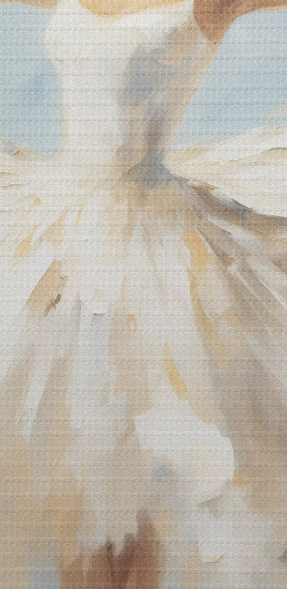 Țesătura fină a firelor de pe această pânză seamănă cu suprafața pânzelor artiștilor profesioniști.