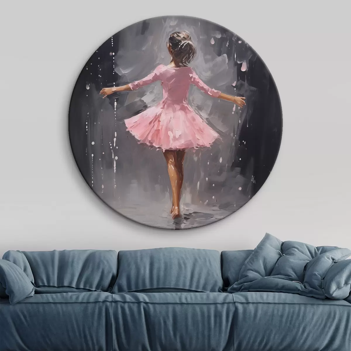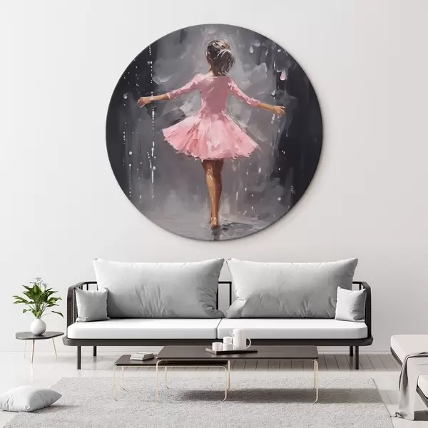 Picturi rotunde Oameni, fată în rochie roz, imitație pictură în ulei Nr r43258