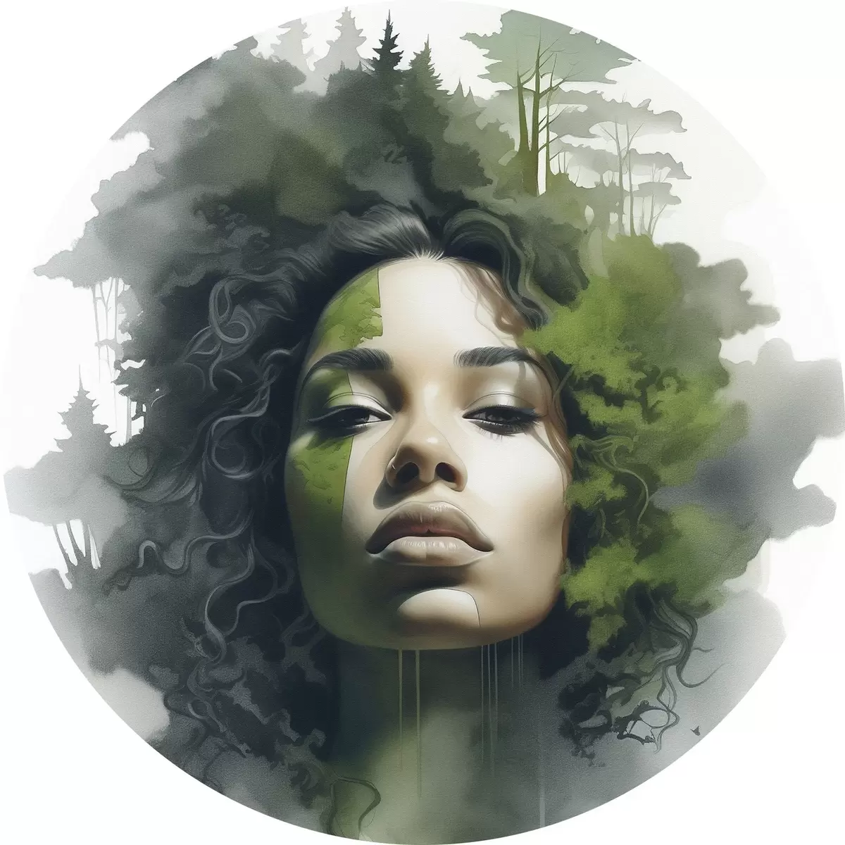 Picturi rotunde Oameni, imagine abstractă a unei păduri r43260