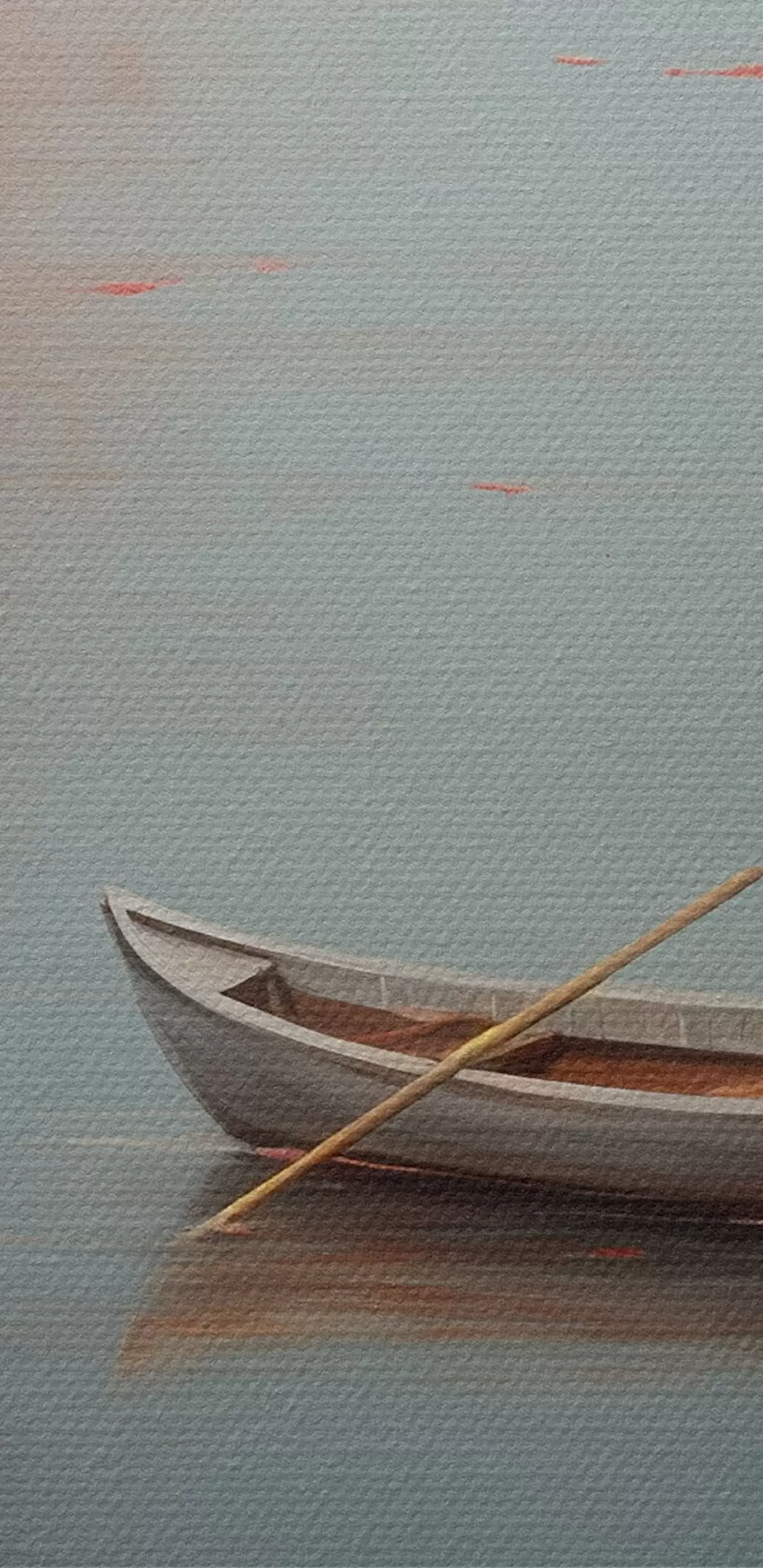 Picturi rotunde Barcă, imitație de pictură în ulei r43261