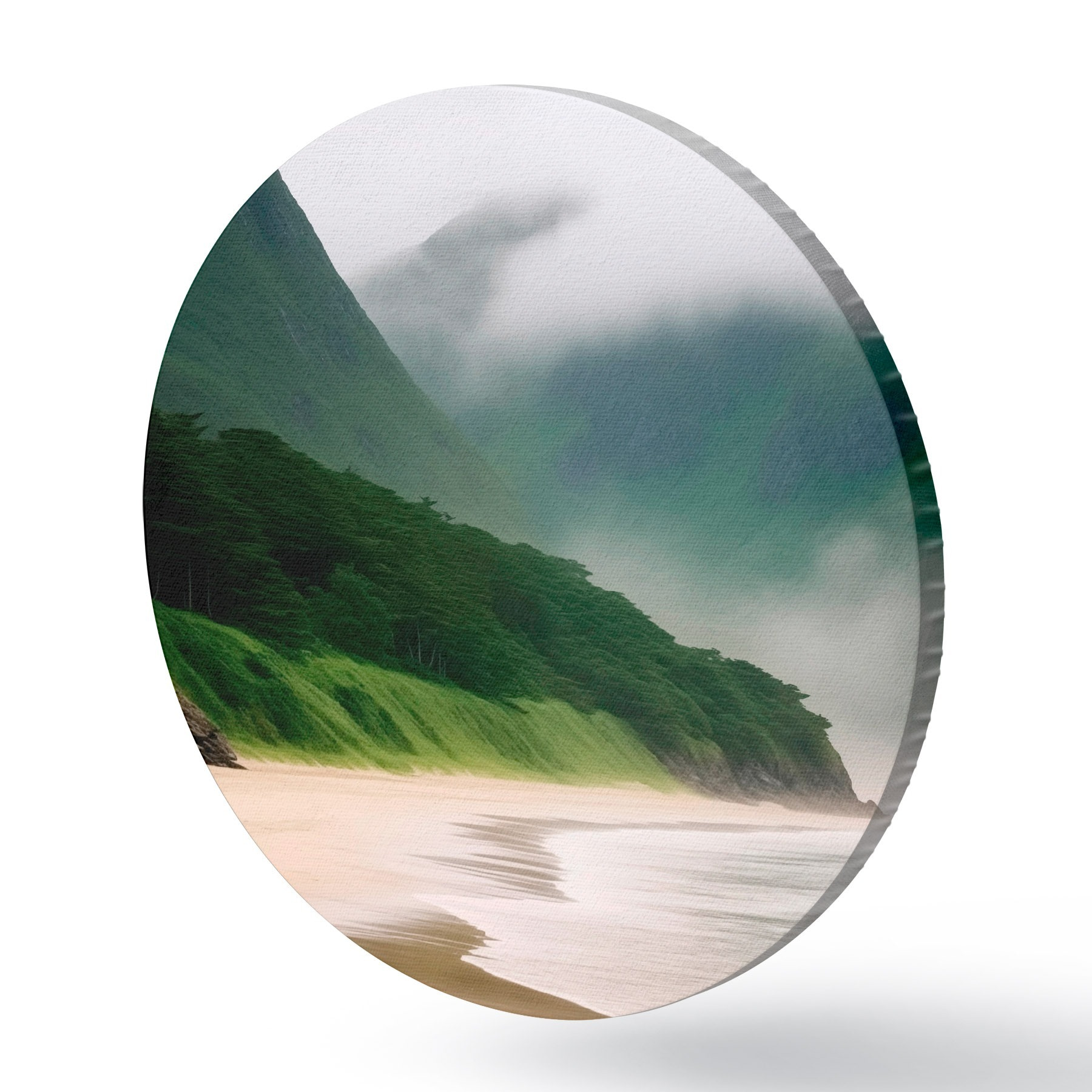 Picturi rotunde Plajă cețoasă lângă pante verzi Nr r43271
