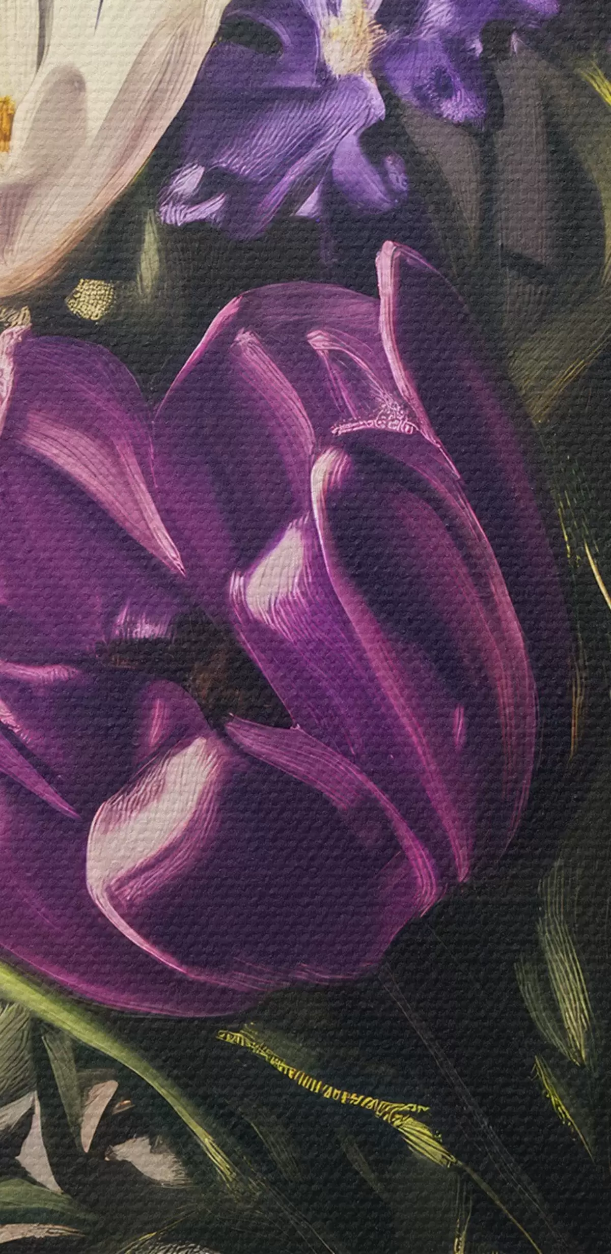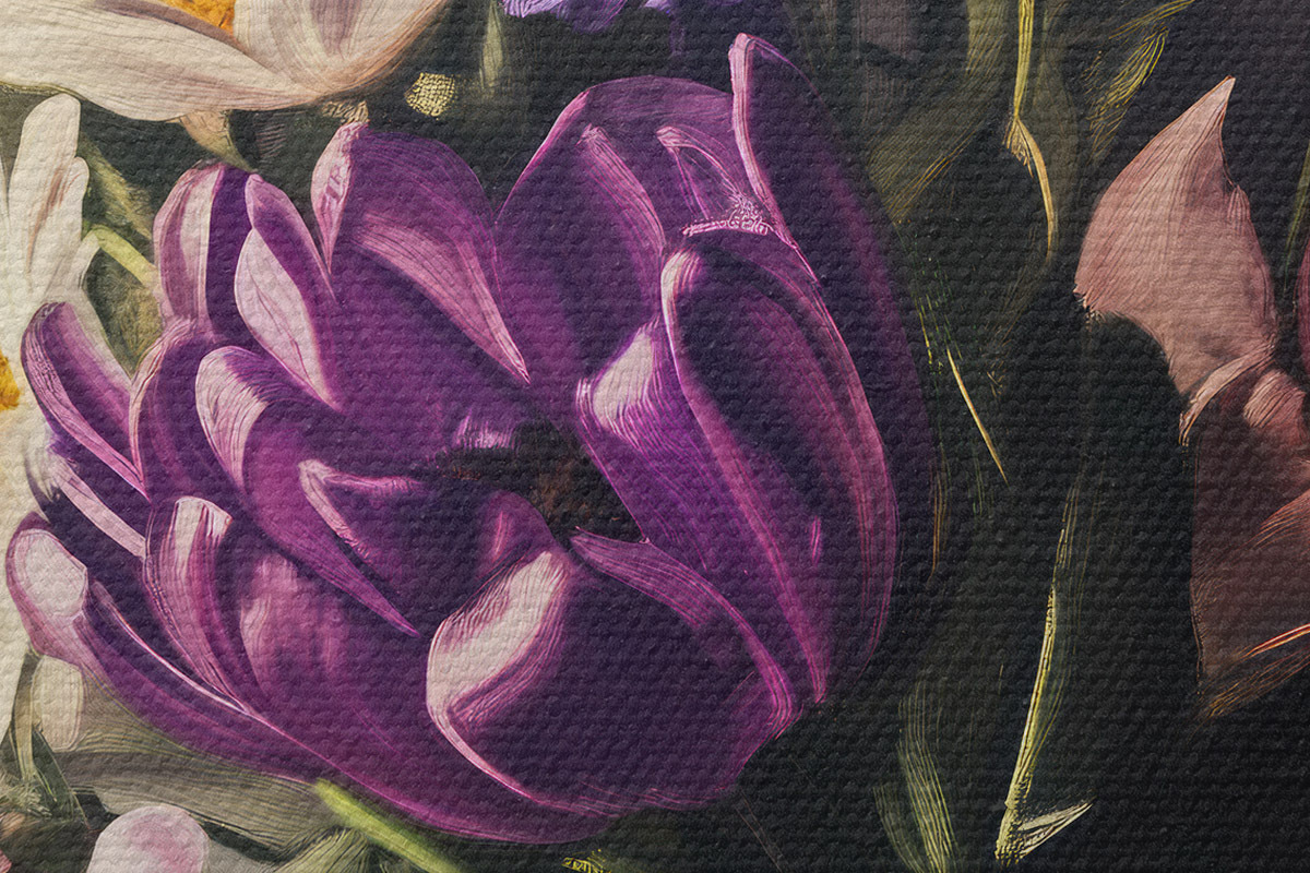 Trei tipuri de materiale sunt disponibile pentru comandă: Economic Canvas - un material dens și durabil pentru imprimarea digitală, identic cu pânza de pictor, suprafață impermeabilă, reproducere realistă a detaliilor, material cu granulație medie. Premium Canvas - textura seamănă cu cea a pânzei unui pictor (fire mici împletite). Reproducere moale, detaliată a imaginii pe o suprafață mată. Eco-Premium - țesătură 100% bumbac de înaltă calitate. Datorită fibrelor naturale de bumbac, materialul este durabil și rezistent la uzură. Reproducere excelentă a culorilor și a detaliilor.