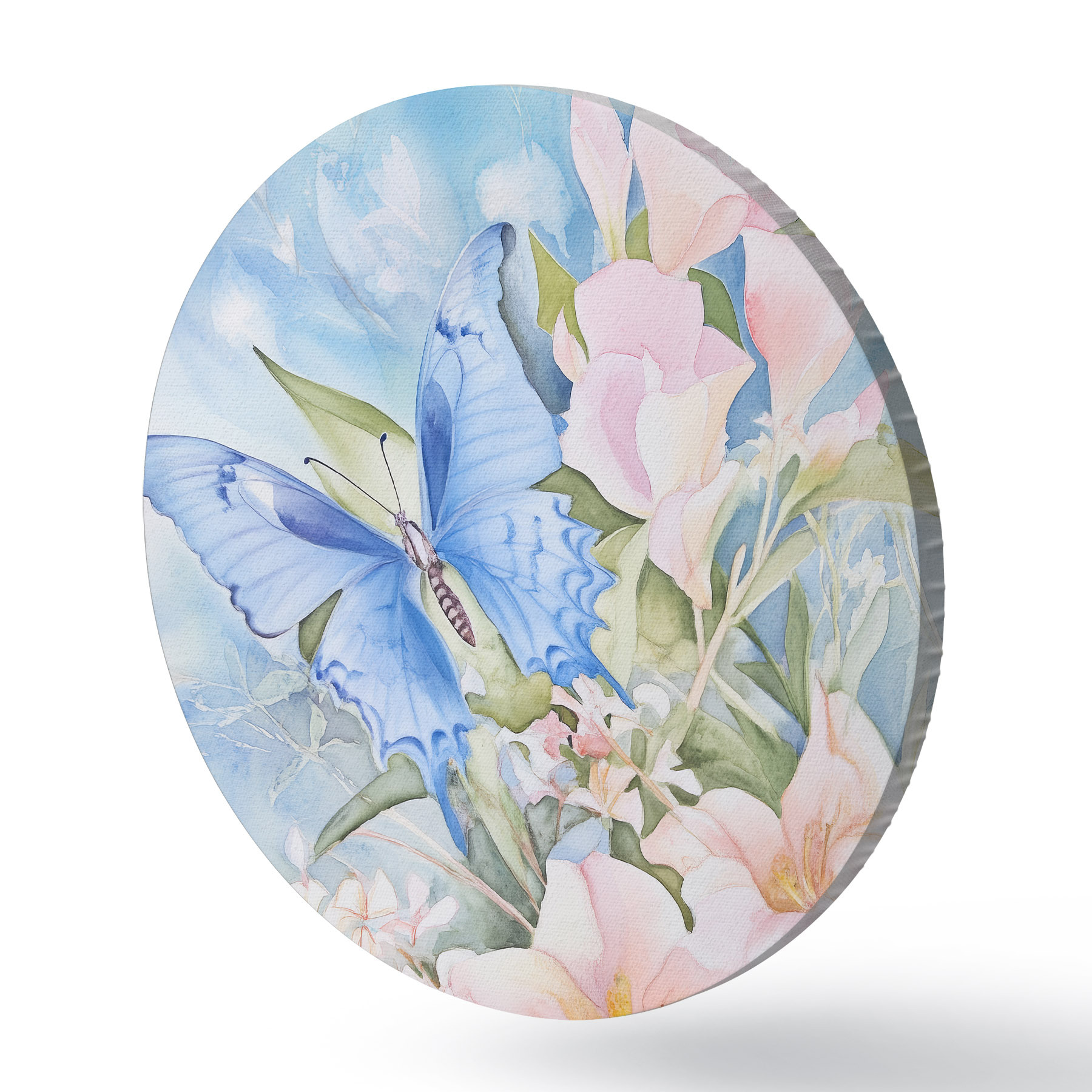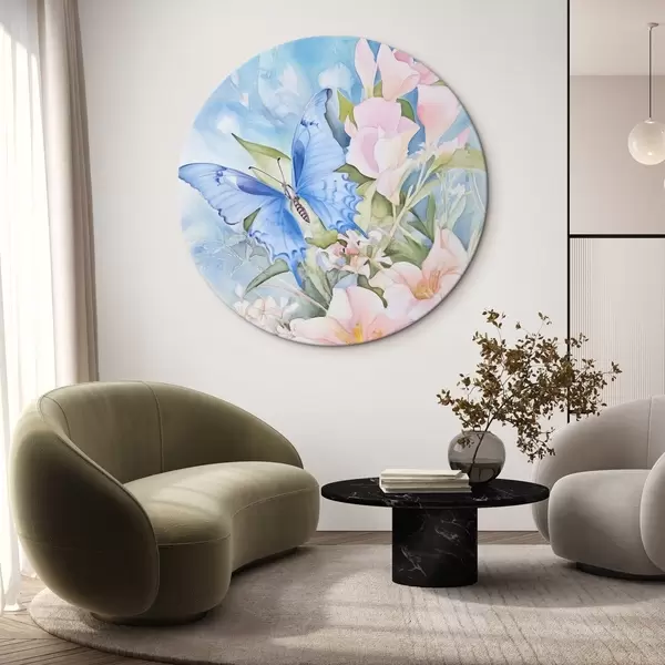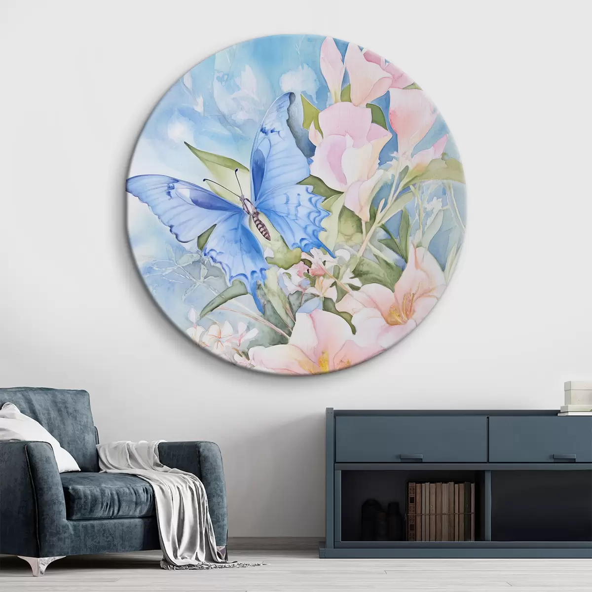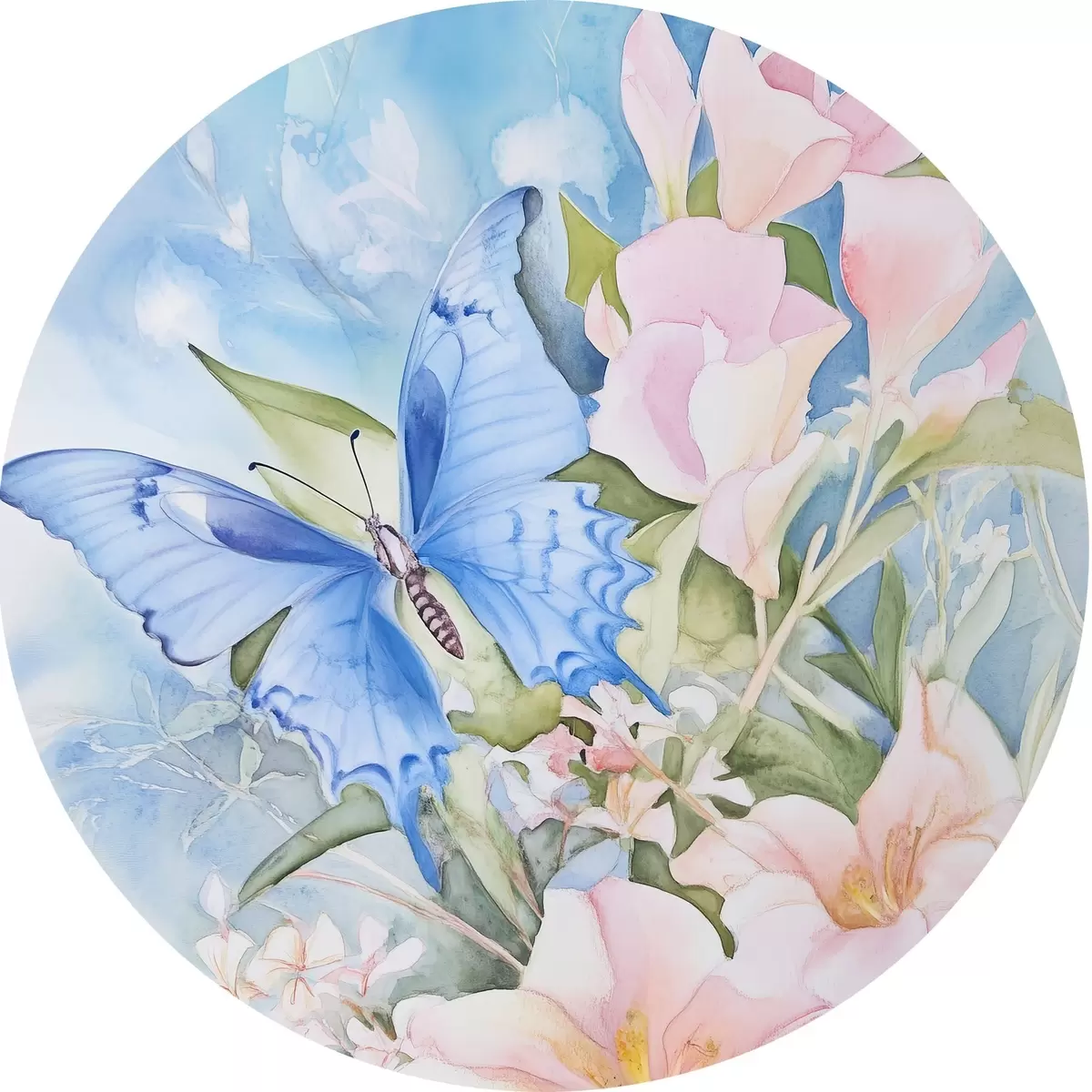 Picturi rotunde Fluture albastru și flori roz Nr r43296