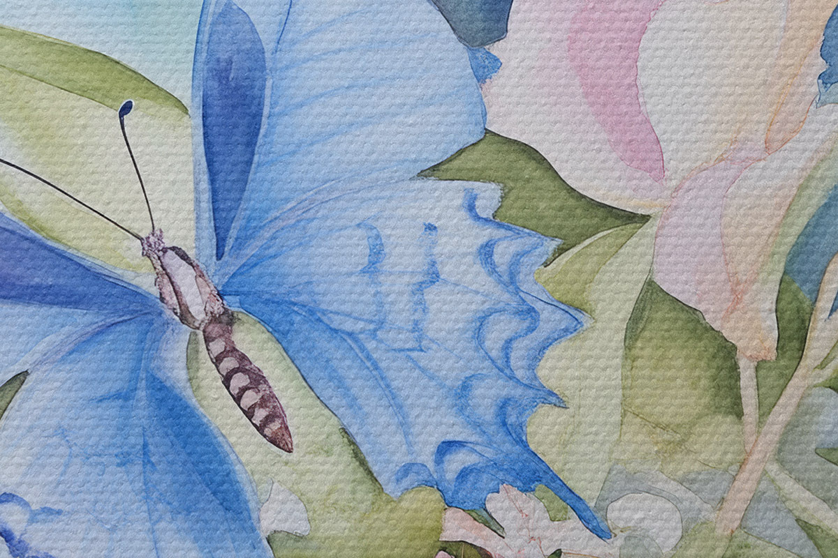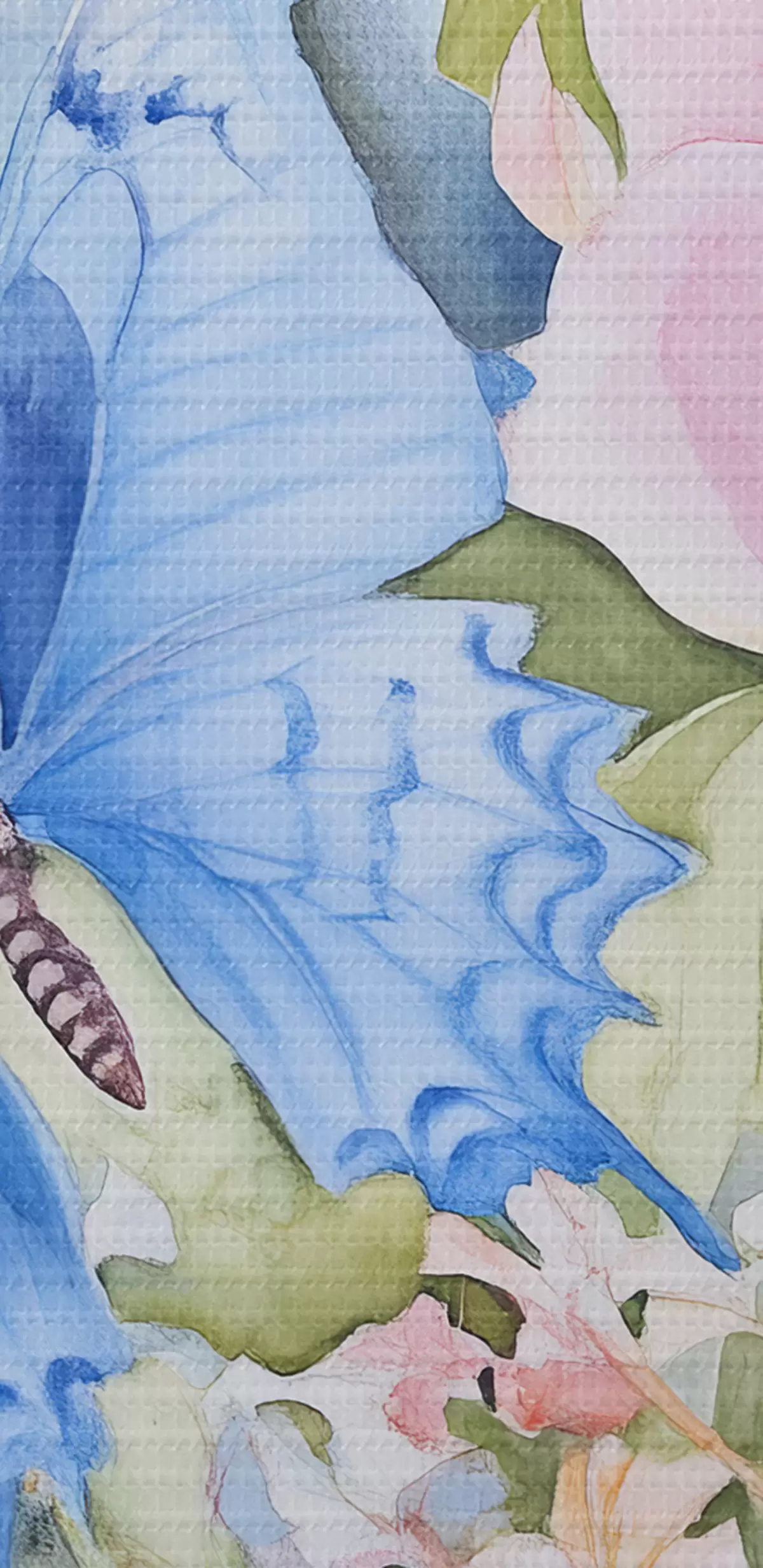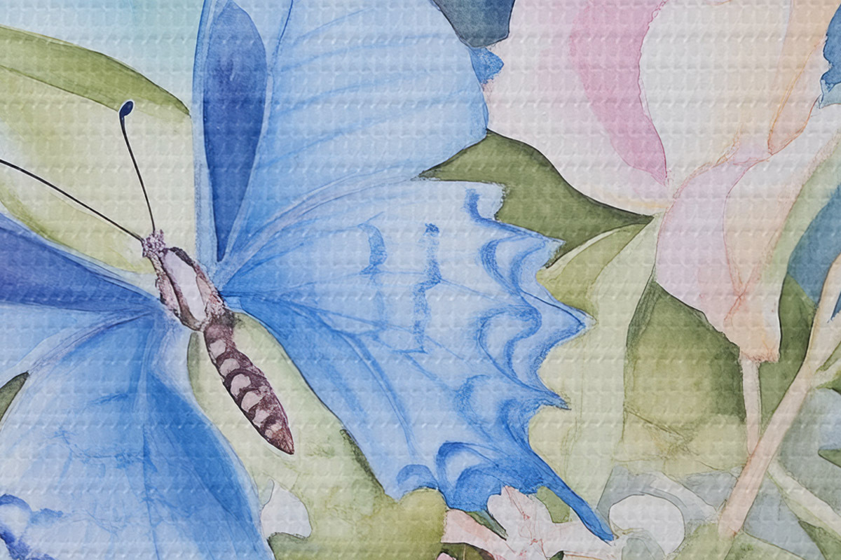 Picturi rotunde Fluture albastru și flori roz Nr r43296