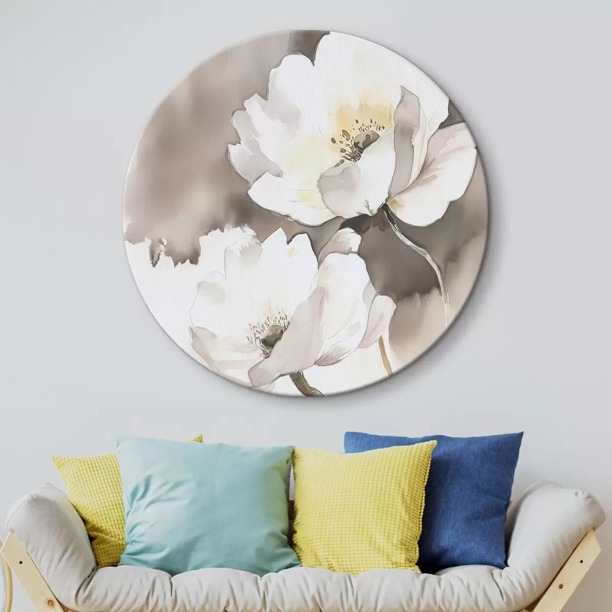 Picturi rotunde Flori albe pe un fundal maro în stilul vopselei de acuarelă Nr r43297