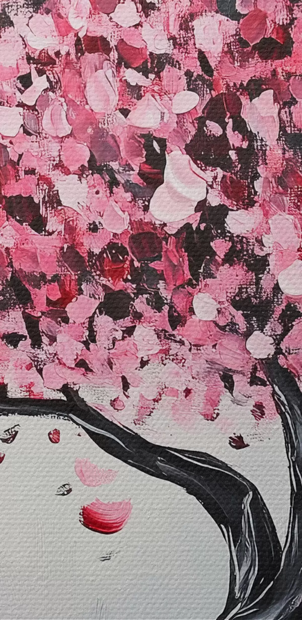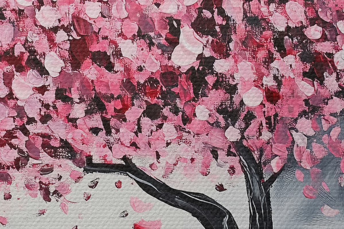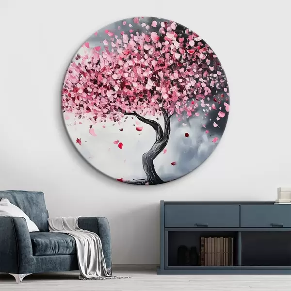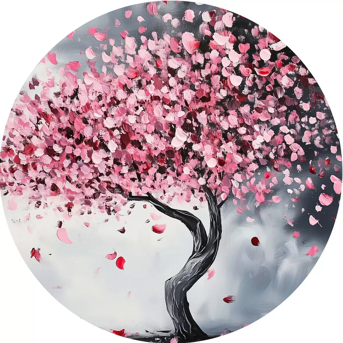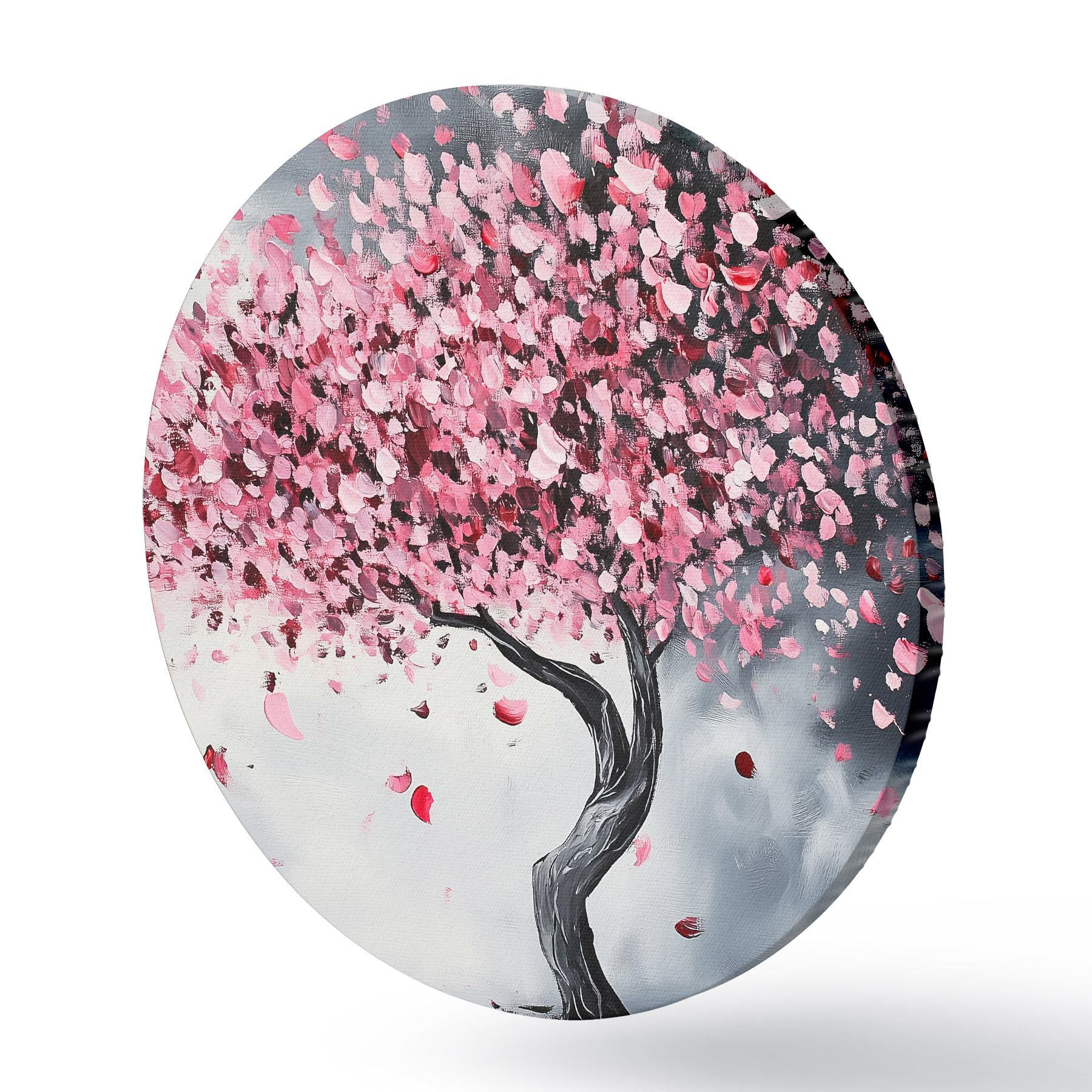 Picturi rotunde Copac înflorit roz pe fundal gri Nr r43299