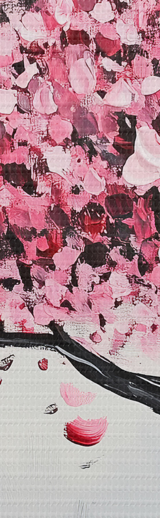 Picturi rotunde Copac înflorit roz pe fundal gri r43299
