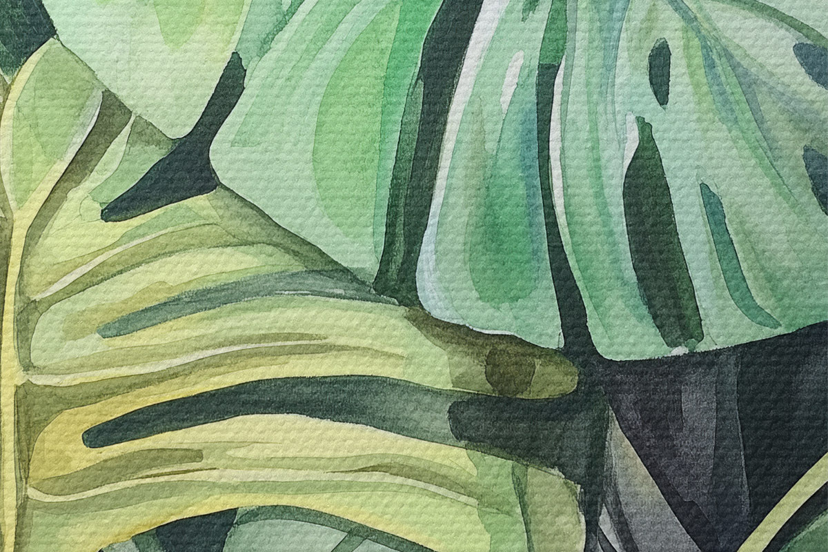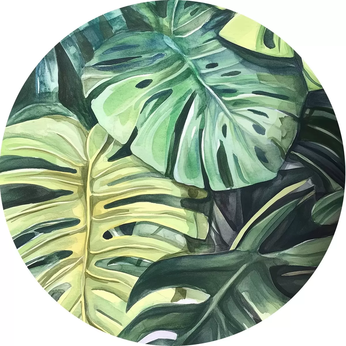 Picturi rotunde Frunze tropicale pe fundal alb Nr r43305