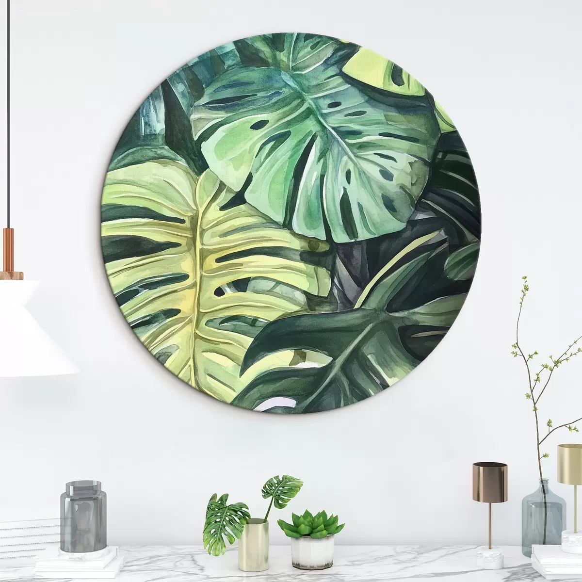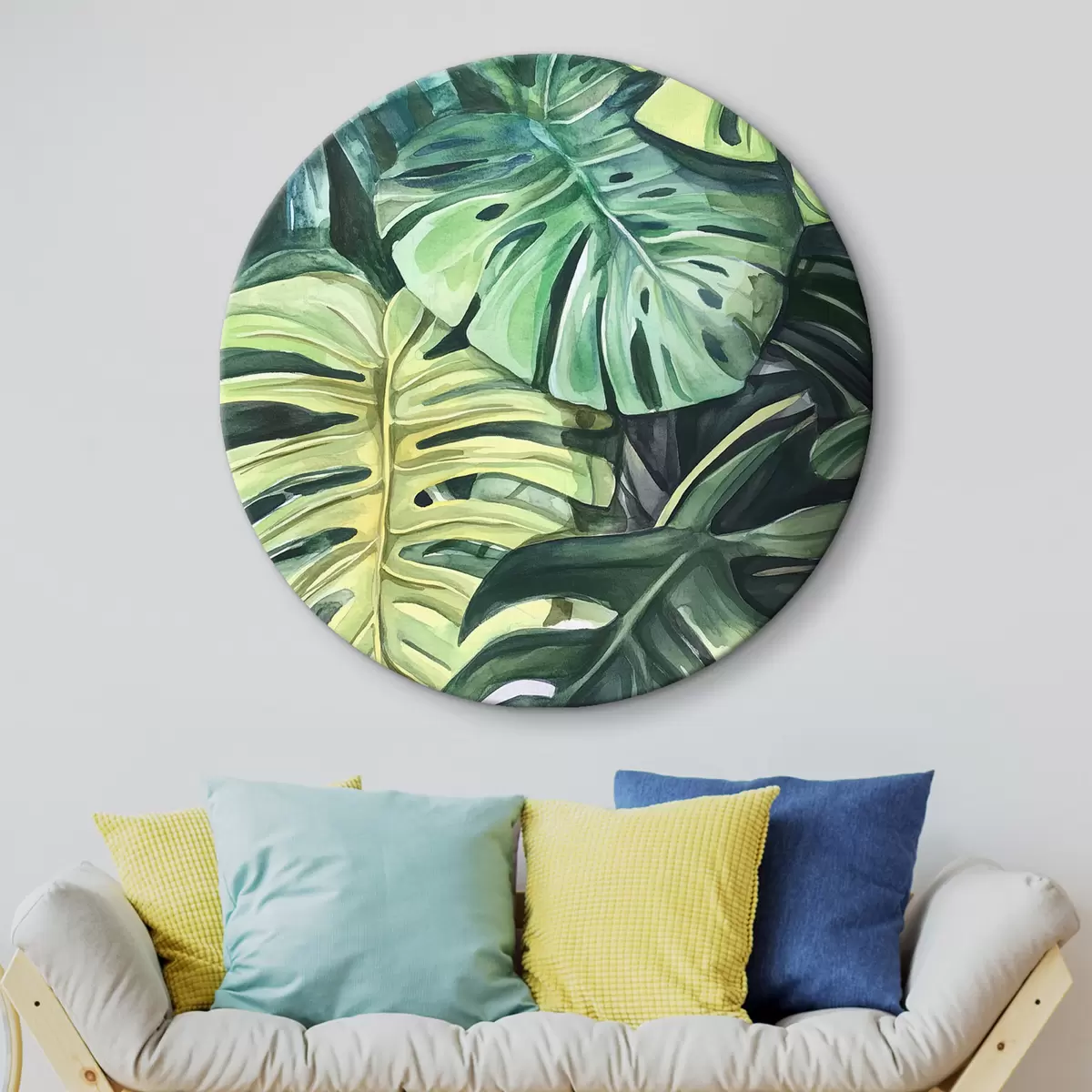 Picturi rotunde Frunze tropicale pe fundal alb r43305
