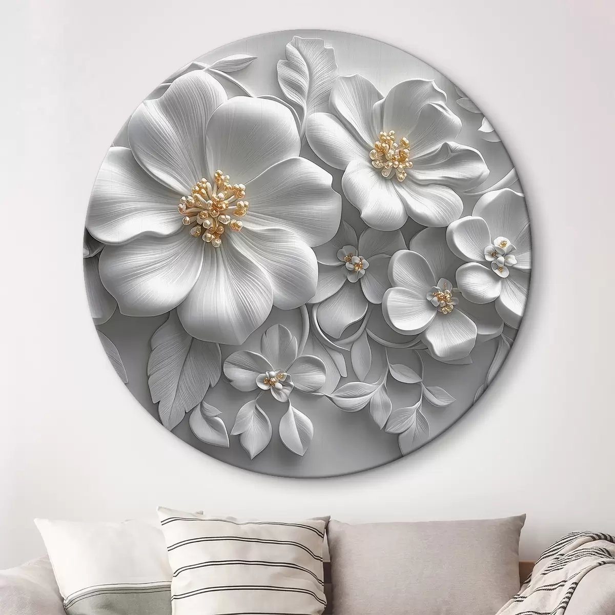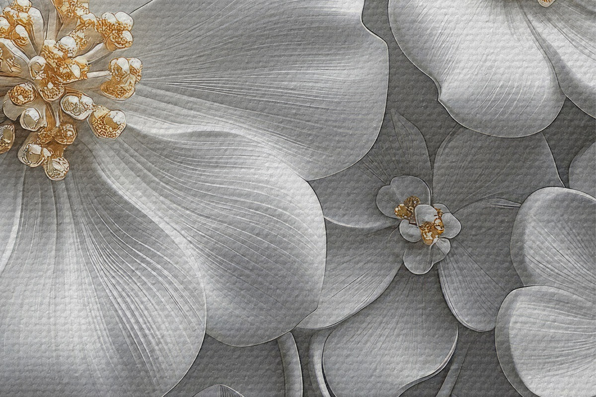 Picturi rotunde flori gri 3d cu un accent galben r43310